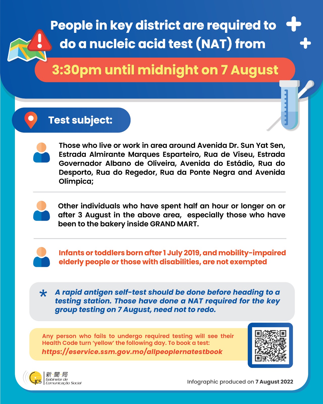 • [Infographic] People in key district are required to do a nucleic acid test (NAT) from 3:30pm until midnight on 7 August