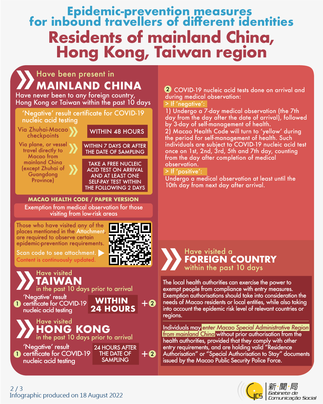 [infographic] Epidemic-prevention measures for inbound travellers of different identities (23 August 2022 )