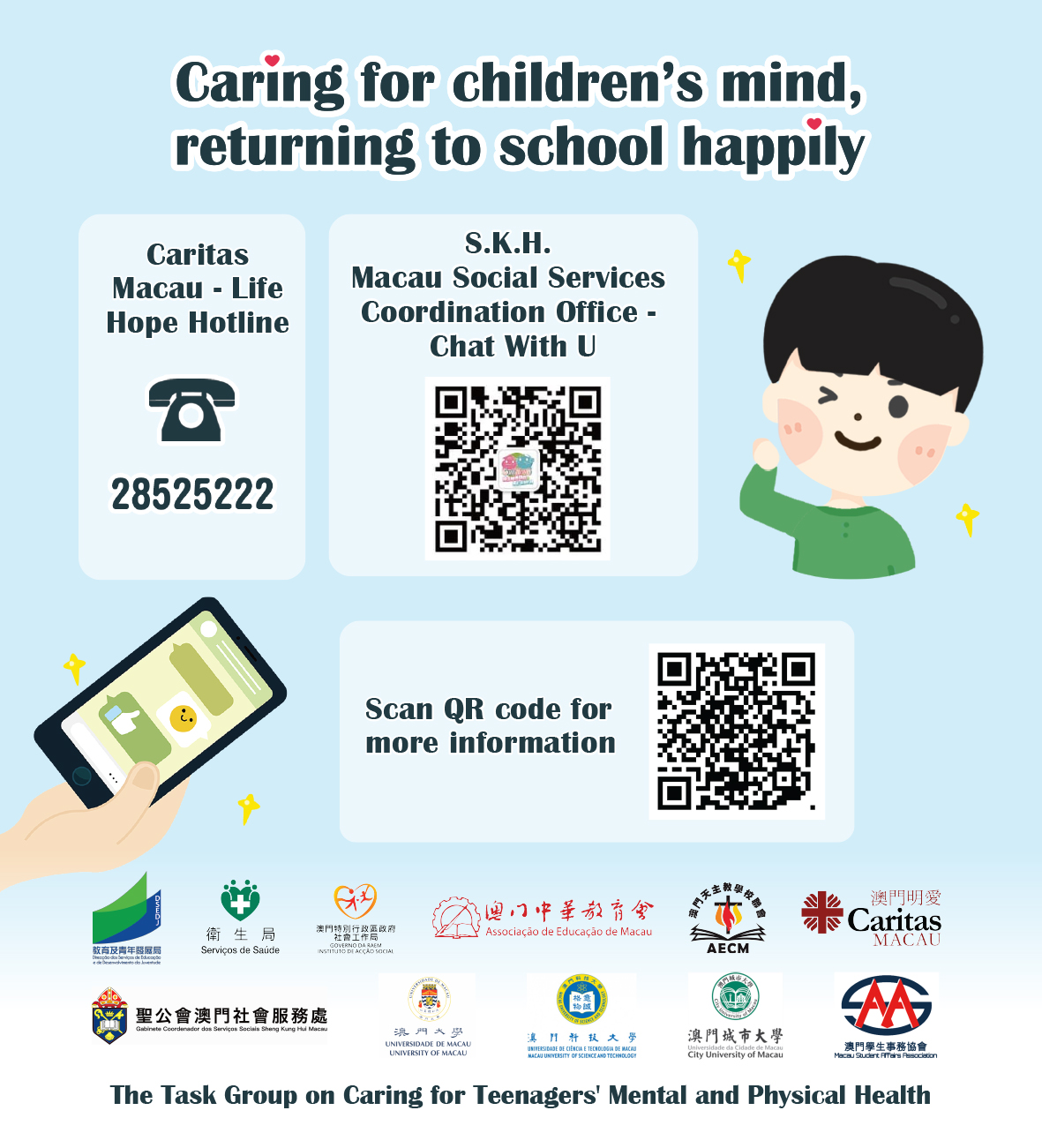 In addition, as Macao is still in the typhoon and rainstorm season in September, parents and students should remain vigilant at all times and pay attention to news about weather and traffic before going out. If classes are suspended due to bad weather, schools will keep the gate and school premises open, arrange for staff to take care of the students who have arrived at school and provide them with appropriate educational activities. Parents do not need to rush to fetch their kids from school. If a student is late or absent due to force majeure, the school is advised to flexibly handle it according to the actual situation.