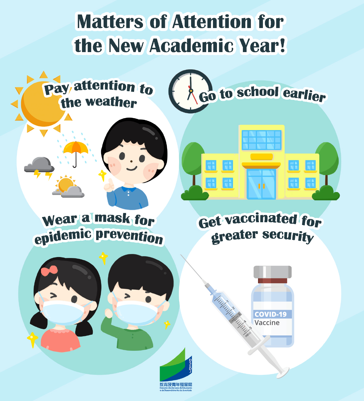 The new academic year is approaching. The DSEDJ calls on parents and students to prepare for school opening as soon as possible and pay close attention to the latest information about traffic, weather and epidemic prevention released by the SAR government.