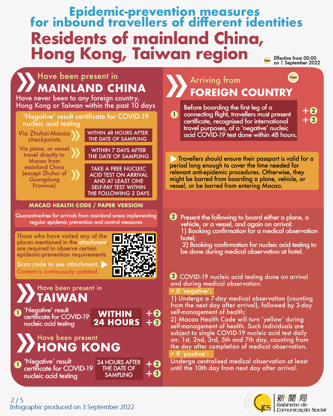 [infographic] Epidemic-prevention measures for inbound travellers of different identities (1 September 2022 )