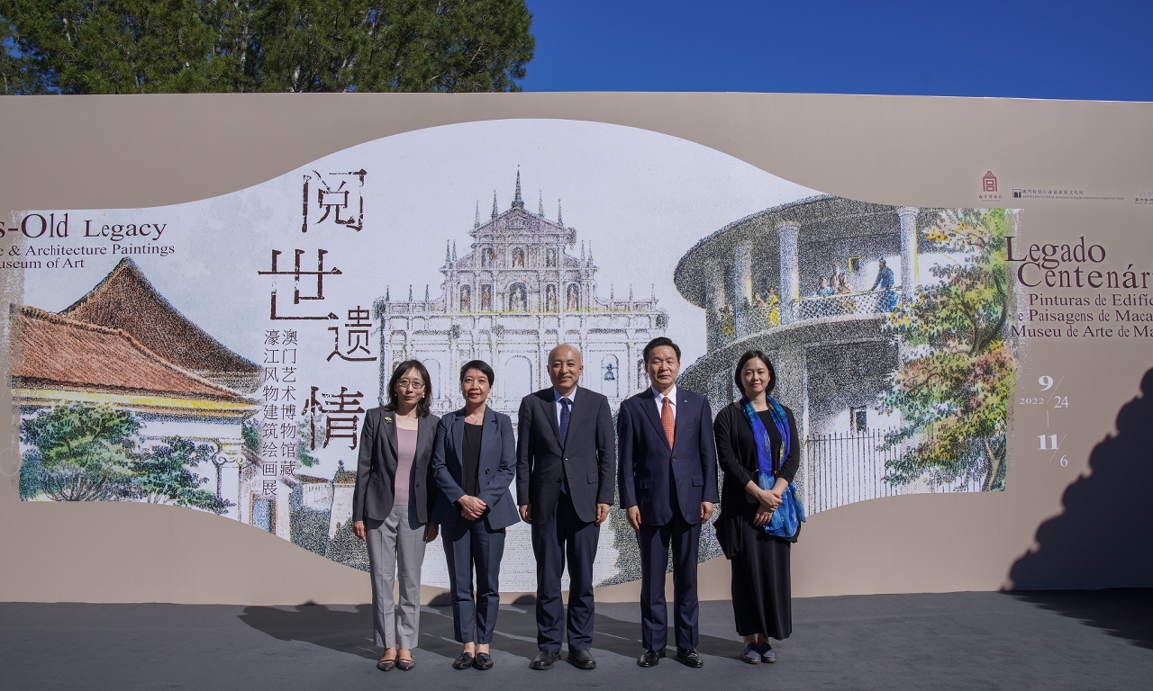 The exhibition “Centuries-Old Legacy: Macao’s Landscape and Architecture Paintings from the Macao Museum of Art”, organized by the Cultural Affairs Bureau of the Macao SAR Government and the Palace Museum, was inaugurated on 23 September with an opening ceremony at the Hall for Abstinence in the Palace Museum. The ceremony was officiated by the Director of the Palace Museum, Wang Xudong; the President of the Cultural Affairs Bureau of the Macao SAR Government, Leong Wai Man; the First Class Inspector of the Bureau of International Exchange and Cooperation of the Ministry of Culture and Tourism of the People's Republic of China, Zhang Xilong; the Deputy Director and Second Class Inspector of the Department of Exchange and Cooperation of the National Cultural Heritage Administration, Zhu Ye; and the Director of the Macao Museum of Art, Un Sio San.