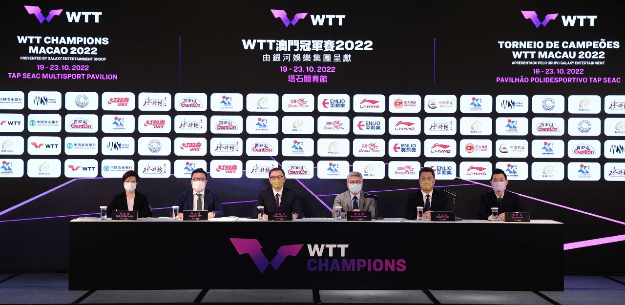 WTT Champions Macao 2022 presented by Galaxy Entertainment Group, organized by the Sports Bureau of the Macao SAR Government and World Table Tennis (WTT) and co-organized by the Macau Table Tennis General Association, will be held at Tap Seac Multisport Pavilion from 19 to 23 October 2022. The event will feature world’s top players who will showcase their spectacular skills to residents and tourists alike as they engage in a series of breath-taking matches.