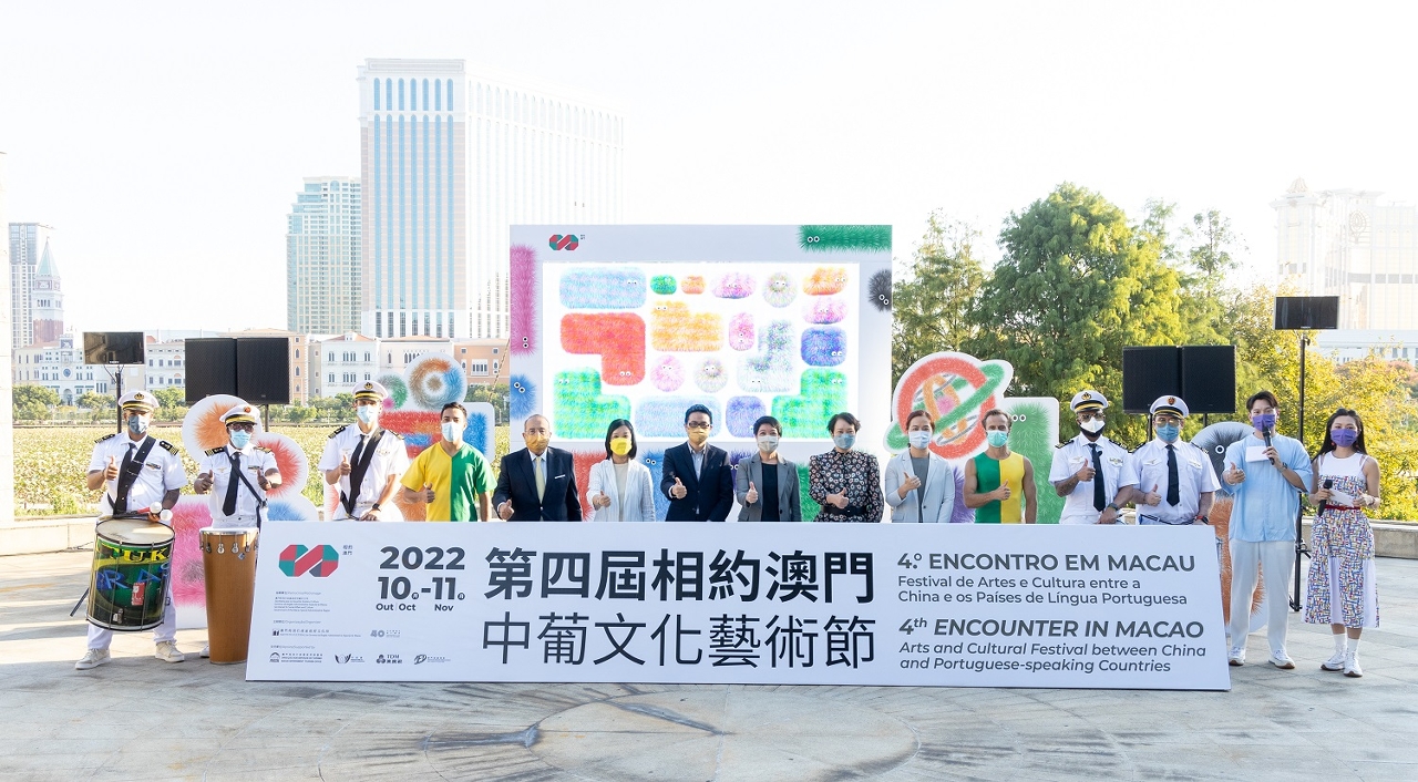 The programme presentation of the 4th Encounter in Macao – Arts and Cultural Festival between China and Portuguese-speaking Countries was held today (12 October) at the Taipa Houses, with the presence of the President of the Cultural Affairs Bureau, Leong Wai Man; the Deputy Director of the Macao Government Tourism Office, Cheng Wai Tong; the Member of the Administration Committee on Municipal Affairs of the Municipal Affairs Bureau, Isabel Celeste Jorge; the Chairman of the Executive Committee of TDM - Teledifusão de Macau, S.A., Lorman Lo Song Man; Acting Director, School of Hotel Management, IFTM, Dr. LEI WENG SI; Group Advisor of Galaxy Entertainment Group, Dr. Jorge Neto Valente, among others. The presentation featured an introduction to the programme and a Brazilian Capoeira dance performance presented by a group of dancers led by Eddy Murphy, kicking the Festival off with jubilant vibes.
