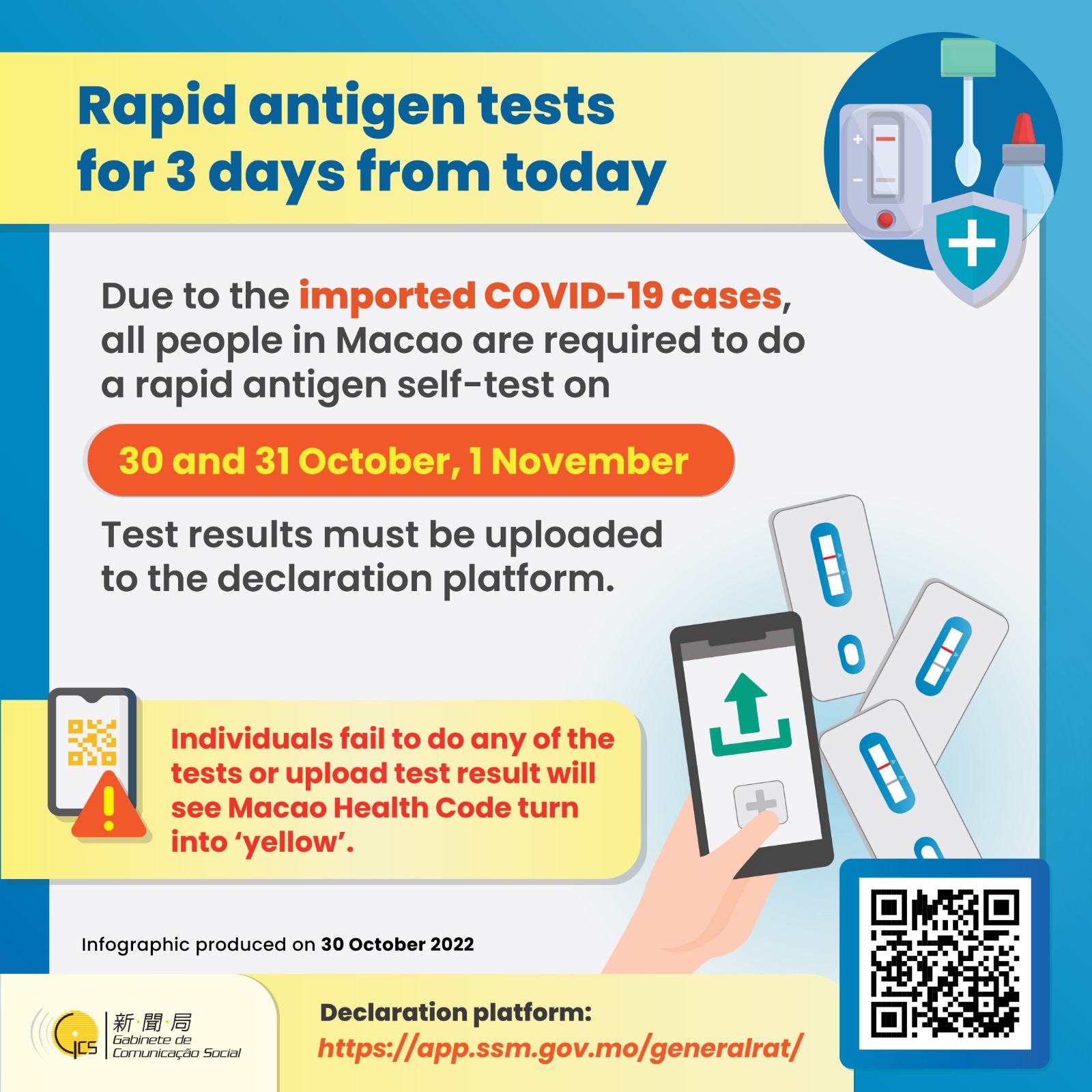 [Infographic] All people in Macao are required to do a rapid antigen self-test on 30 and 31 October and 1 November