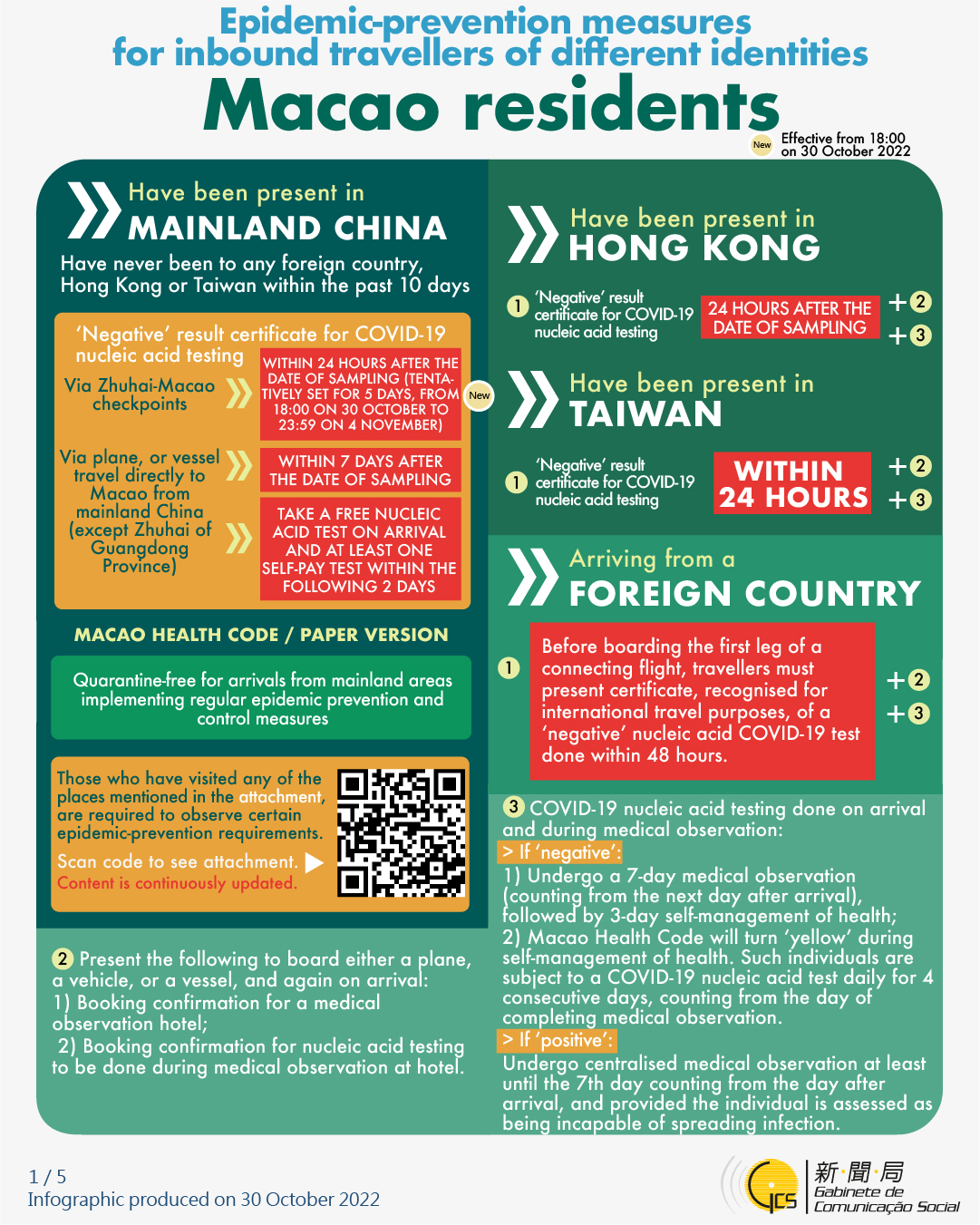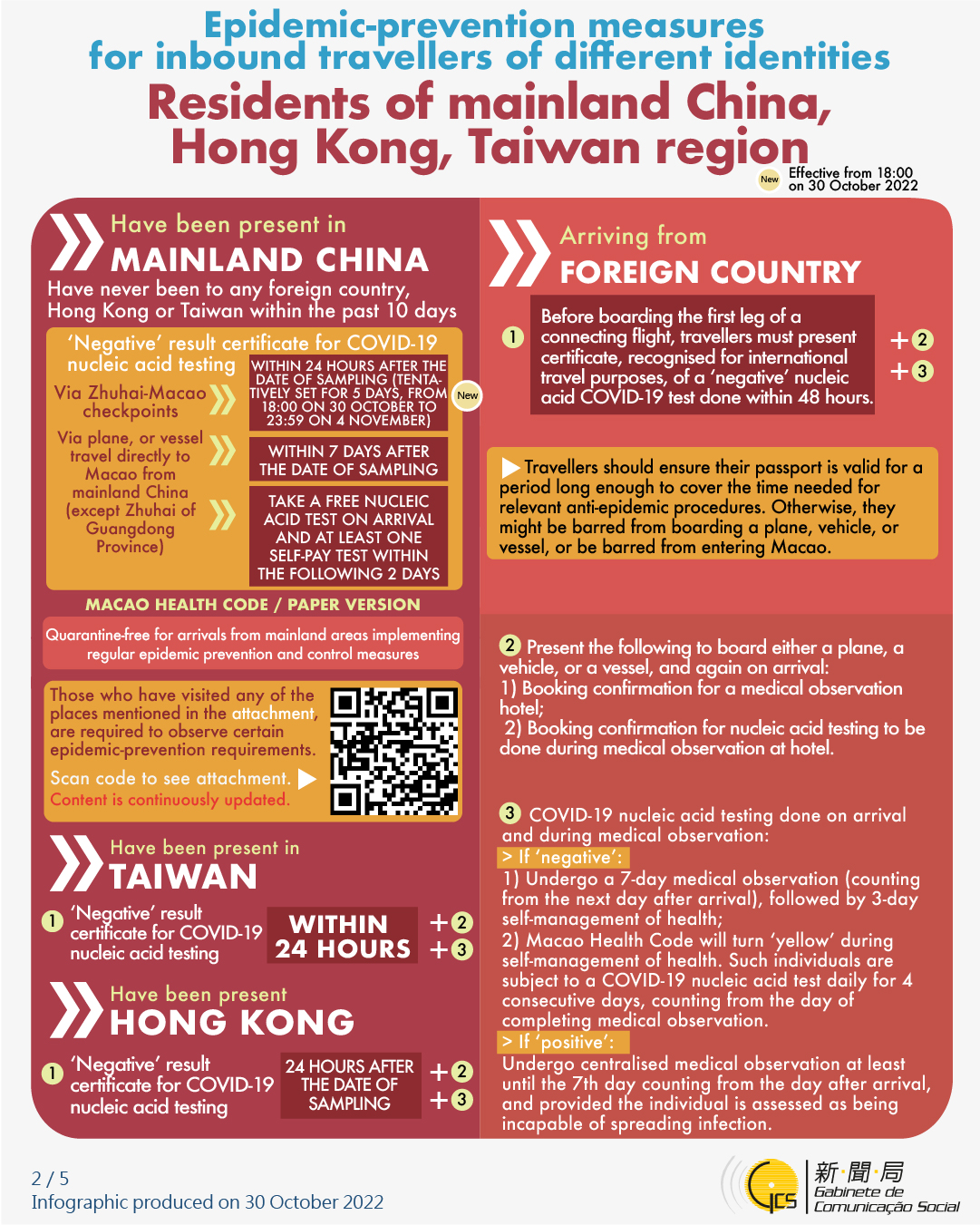 [infographic] Epidemic-prevention measures for inbound travellers of different identities (31 October 2022 )