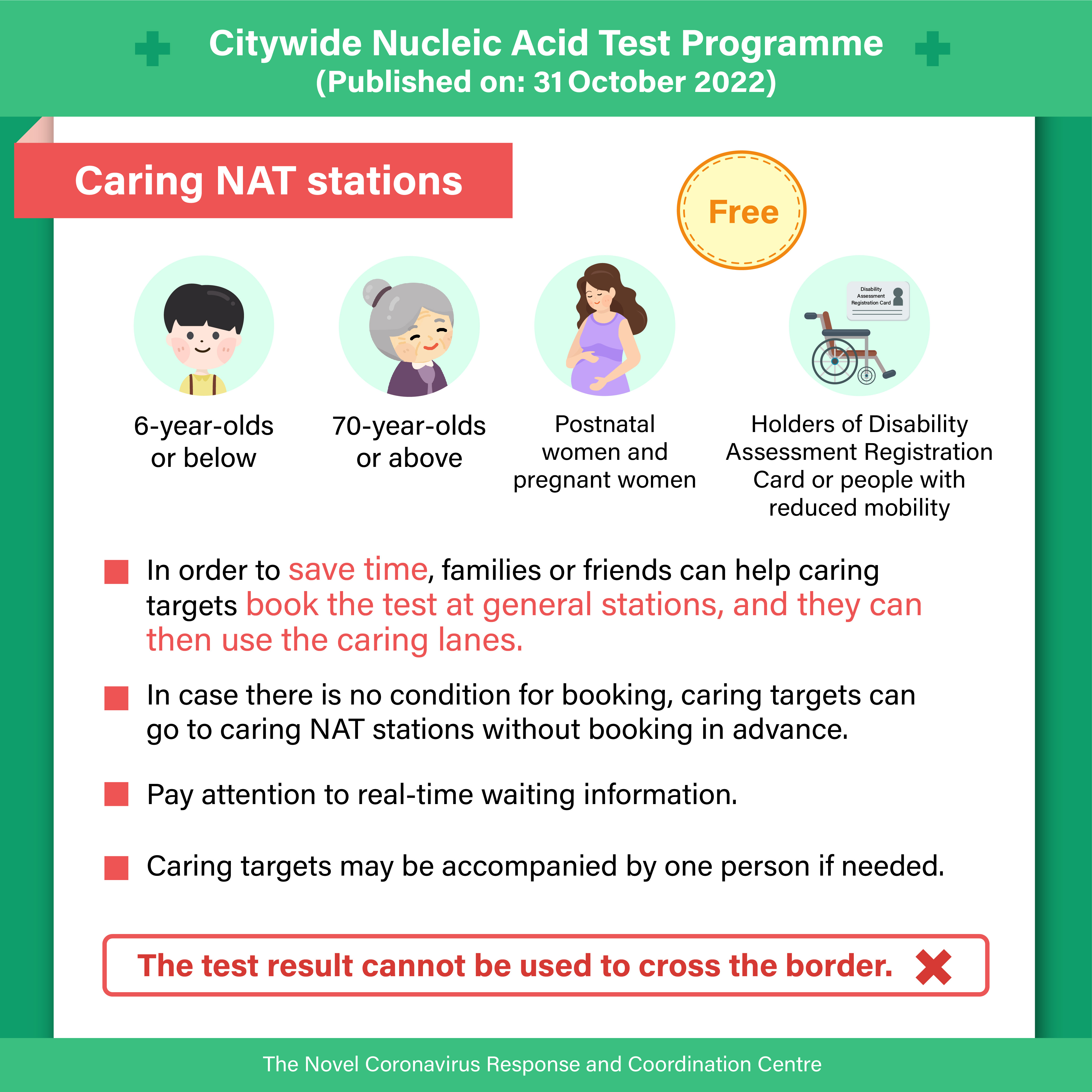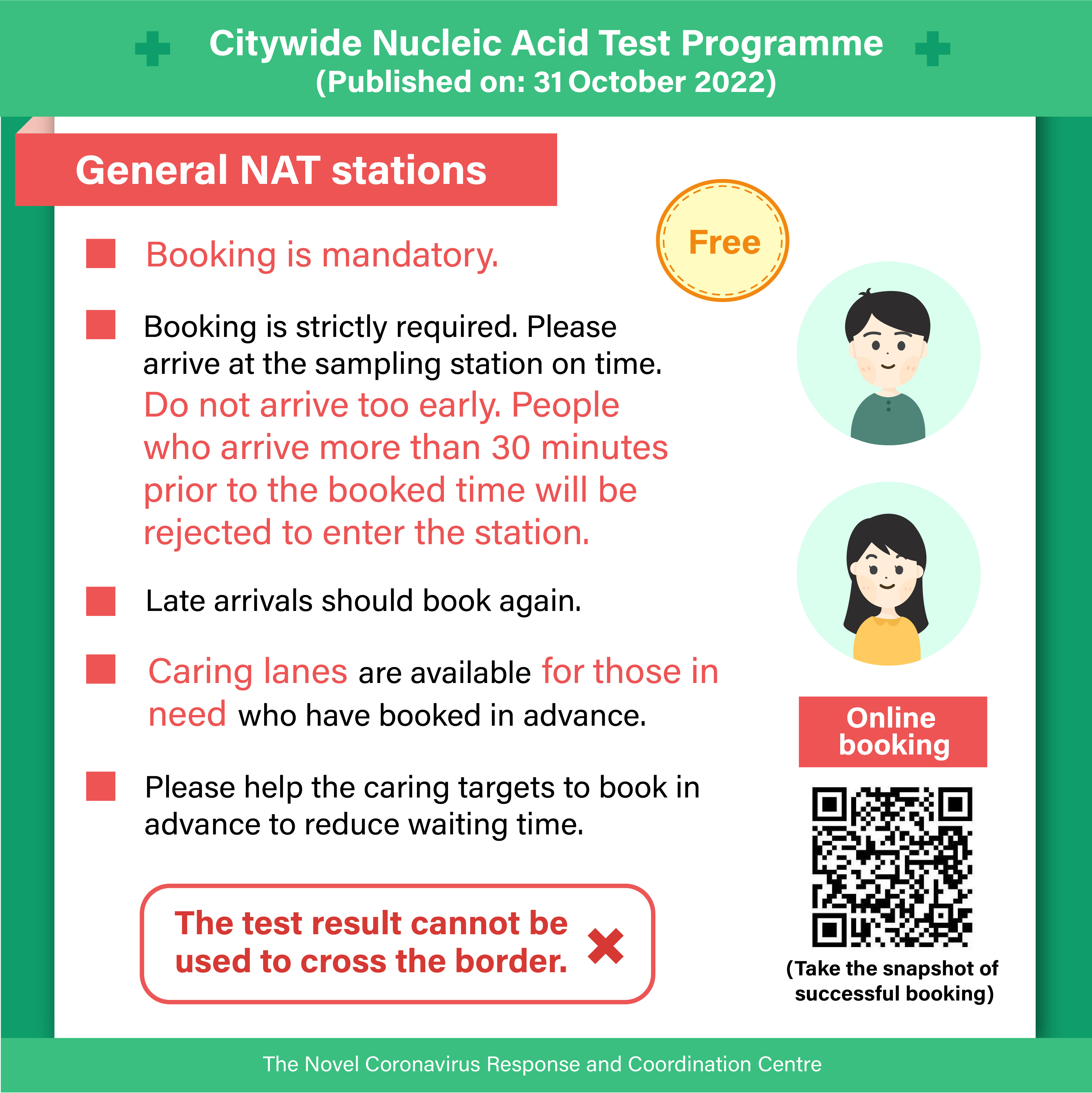 - To avoid repeat testing, all nucleic acid tests performed on 31 October - regardless of where the samples were collected or whether they were free or not - will be counted into the present citywide NAT scheme;
