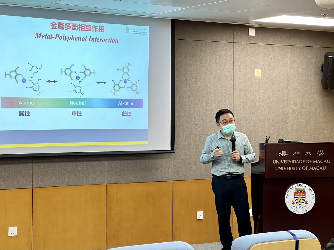 Plant polyphenols are a type of compounds with a polyphenolic structure. They are widely found in plants and protect them against predators. As of today, more than 8,000 types of plant polyphenols have been discovered, and they are used for various purposes based on their anti-tumour, anti-oxidant, anti-radiation, and anti-thrombotic properties. During the talk, Prof Dai discussed the interaction between phenolic hydroxyl groups, which are widely present in polyphenol molecules, and metal ions of different valence. He also shared his research team’s exploration of the use of metal-polyphenolic biomaterials in cancer treatment.