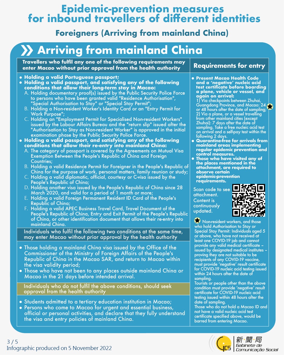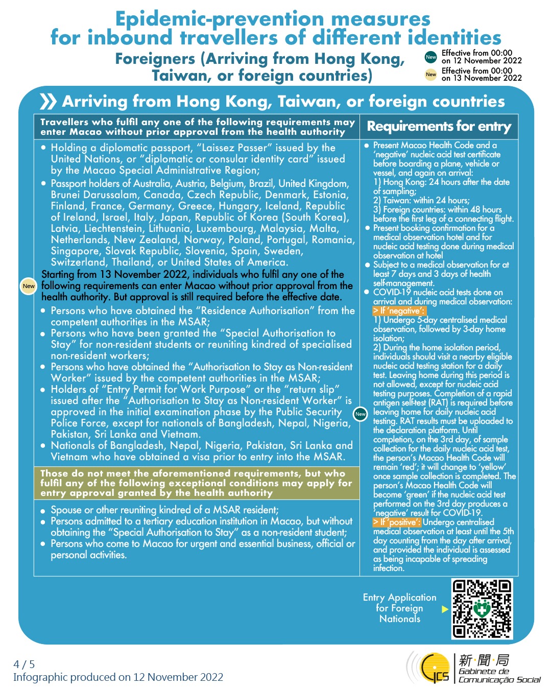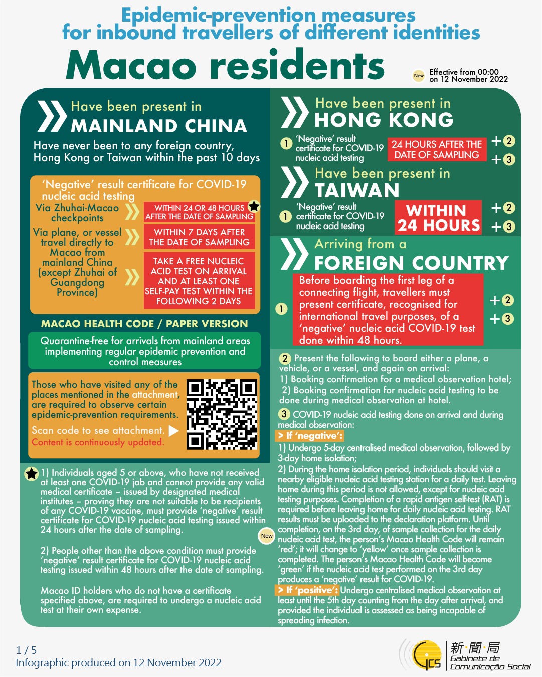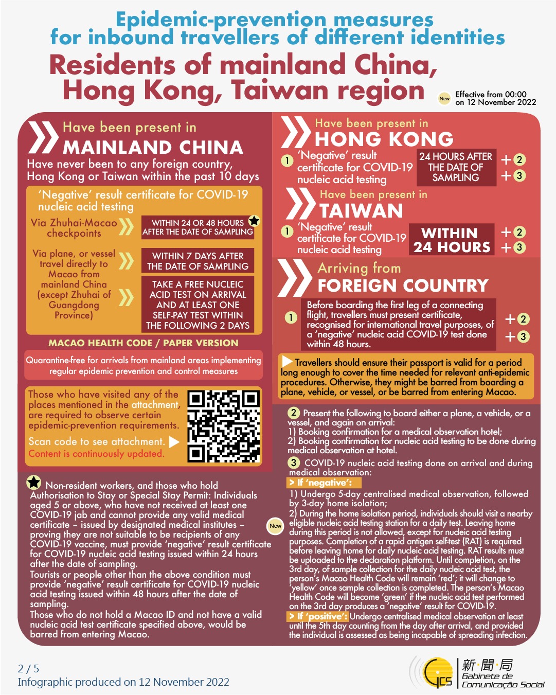 [infographic] Epidemic-prevention measures for inbound travellers of different identities (12 November 2022 )