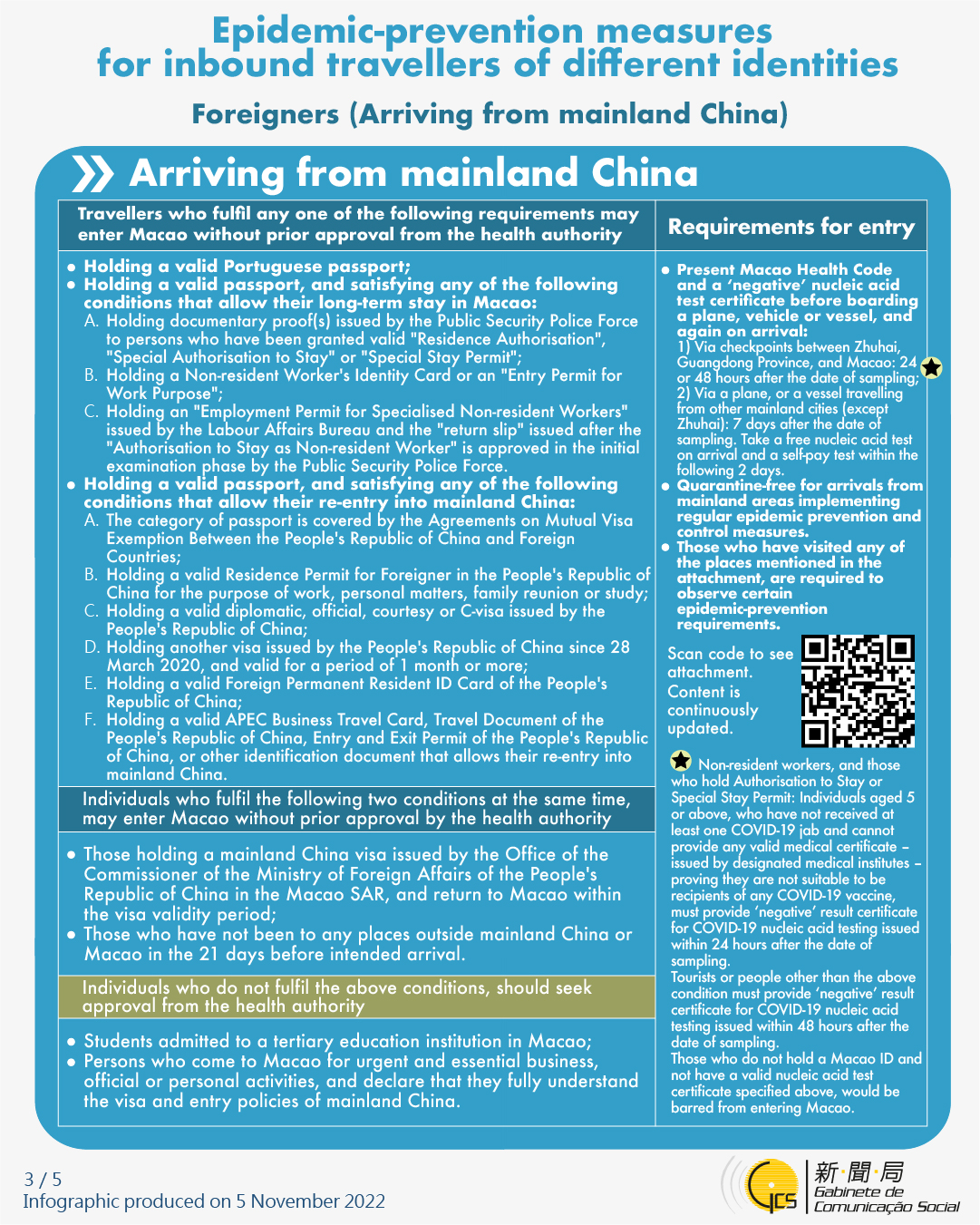 [infographic] Epidemic-prevention measures for inbound travellers of different identities (16 November 2022 )