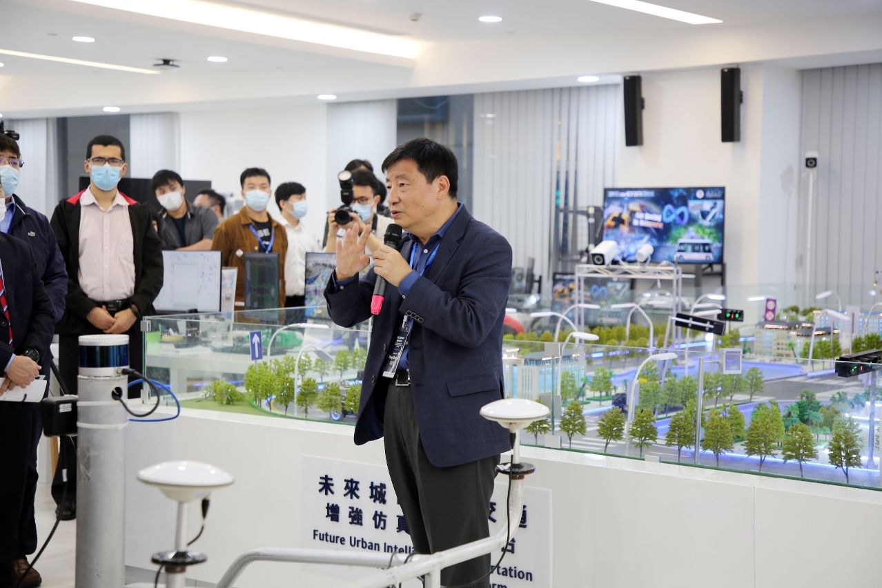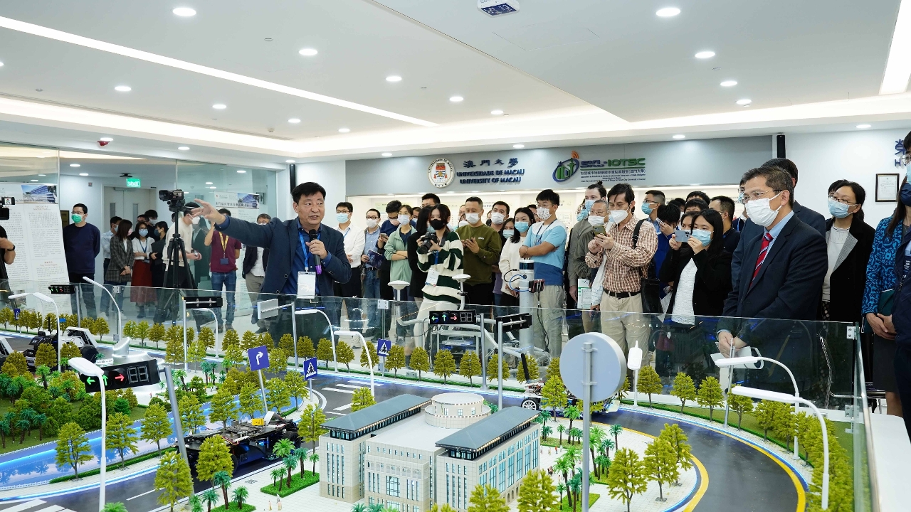 In his speech, Yonghua Song, rector of UM and director of SKL-IOTSC, said that the project aims to use metaverse technology to create world-leading simulated and real scenarios. According to him, the flow of traffic and people can be simulated in these scenarios and is superimposed with real autonomous driving vehicles to create a multi-dimensional metaverse platform. This platform is expected to promote the research and development of new autonomous driving technologies and provide an ideal experimental environment for autonomous driving competitions as well as conditions for the development of e-sports and diversified tourism in Macao. During the event, Xu Chengzhong, dean of the FST, presented the multi-dimensional mixed-reality analog system of the MoCAM platform and demonstrated the interaction between real autonomous driving vehicles and virtual vehicles on a simulation sand table, a technology that can calculate the adaptability of self-driving vehicles to various scenarios on the road to prevent accidents from happening.