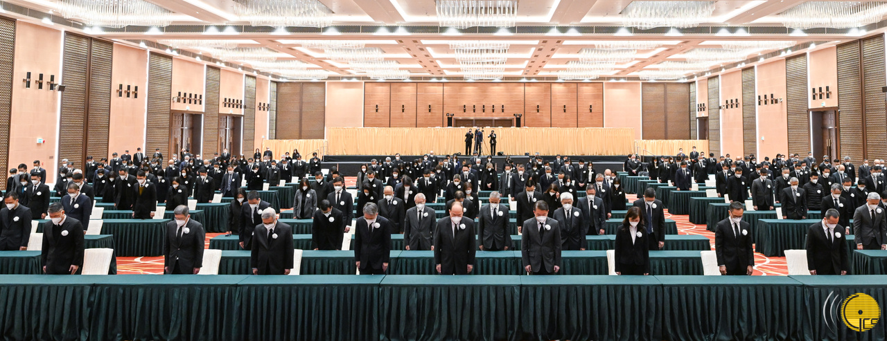 The memorial service for the nation’s former president, Mr Jiang Zemin, was held with solemnity at the Great Hall of the People in Beijing at 10am today. As a mark of respect for the former leader, the Chief Executive, Mr Ho Iat Seng, led a delegation of Government officials to watch, at the China–Portuguese-speaking Countries Commercial and Trade Service Platform Complex, a relay of the live broadcast of the memorial service, and to observe a three-minute silence to the late leader.