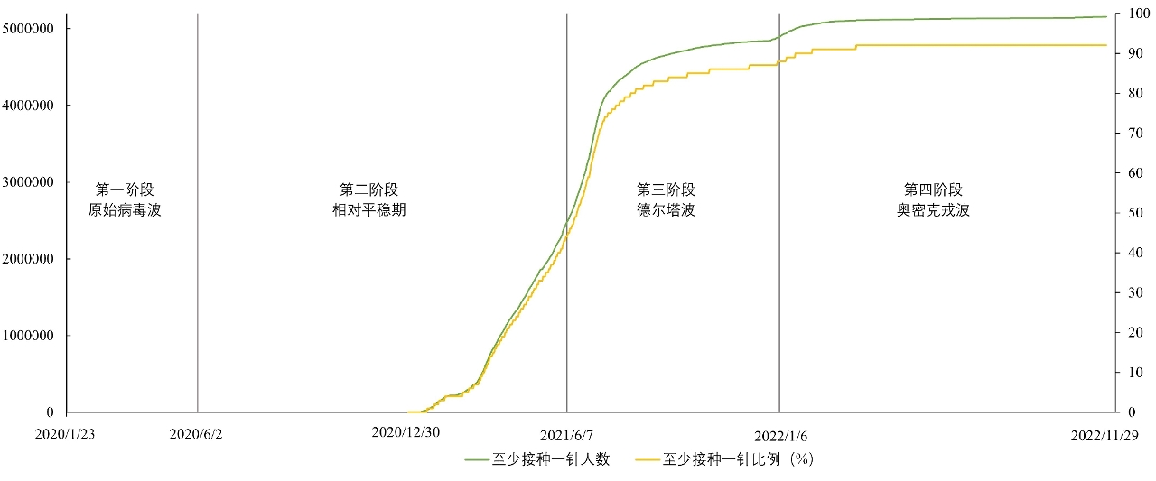 - Continuing to promote vaccination as a means of protection for the community (especially for the elderly): Singapore has been implementing its COVID-19 vaccination strategy in an orderly manner to achieve herd immunity as the country moves towards success in the battle against the virus. According to the latest research data, two doses of COVID-19 vaccine are enough to provide basic protection for a person, and a third dose of the vaccine can further enhance the protection. To this end, it is necessary to further promote vaccination in Macao. The Macao SAR government has already purchased the BioNTech bivalent mRNA vaccine against Omicron BA.4/5 and the special formulation of BioNTech vaccine for toddlers aged between six months and four years, with the registration for vaccination commenced on 1 December. COVID-19 vaccination can reduce the risk of infection and, more importantly, the risk of serious illnesses and death after infection. For this reason, toddlers aged six months or above and other individuals (especially the elderly) who have not yet received the vaccine or booster shot should be vaccinated as early as possible.