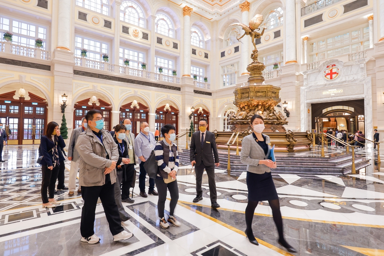 Divided into groups, the delegation visited the World Heritage Site – “The Historic Centre of Macao” and experienced the Macao Grand Prix Museum and “Visiting the Ruins of St. Paul’s in Space and Time - Exhibition of Virtual Reality at the Ruins of St. Paul’s”. They also paid a visit to MinM Plaza, Taipa Village as well as different large integrated resorts and their facilities including Grand Lisboa Palace Resort Macau, The Karl Lagerfeld, Wynn Palace, MGM Cotai, Morpheus, The Londoner Macao, Galaxy Macau, the immersive art space Artelli at the City of Dreams and teamLab SuperNature at The Venetian Macao, among others. Thanks to their visit to Macao tourism facilities and first-hand experience of Macao’s “tourism +” elements, the delegates can share Macao’s tourism resources and their trip experience with Hong Kong residents. They can also update their promotional content and sales of Macao’s latest tourism products to Hong Kongers.