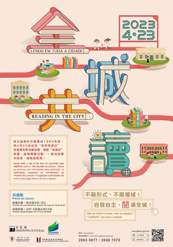 For more information about the activities of “Macao Library Week 2023”, please visit the website of the Public Library of the Cultural Affairs Bureau at www.library.gov.mo , or contact the Macao Public Library counter through tel. no. 2893 0077 or 2855 8049 during office hours.