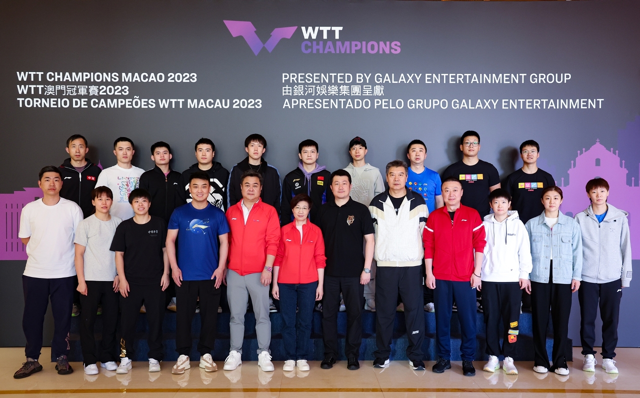 WTT Champions Macao 2023 presented by Galaxy Entertainment Group, organized by the Sports Bureau of the Macao SAR Government, World Table Tennis (WTT) and Galaxy Entertainment Group (GEG), and co-organized by the Macau Table Tennis General Association, will be held at Tap Seac Multisport Pavilion from 17 to 23 April 2023. The tournament features 32 male and 32 female world’s leading players playing in men's singles and women's singles. Chinese national team players such as Fan Zhendong, Ma Long, Wang Chuqin, Sun Yingsha, Chen Meng and Wang Manyu arrived in the city today to prepare for the upcoming matches.