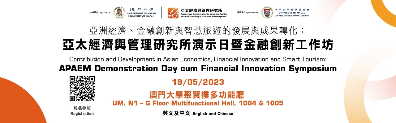 The University of Macau (UM) Asia-Pacific Academy of Economics and Management (APAEM) will hold the APAEM Demonstration Day cum Financial Innovation Symposium on Friday 19 May 2023. During the event, scholars in related fields will share their research findings on the latest developments and applications in Asian economics, financial innovation, and smart tourism. All are welcome.