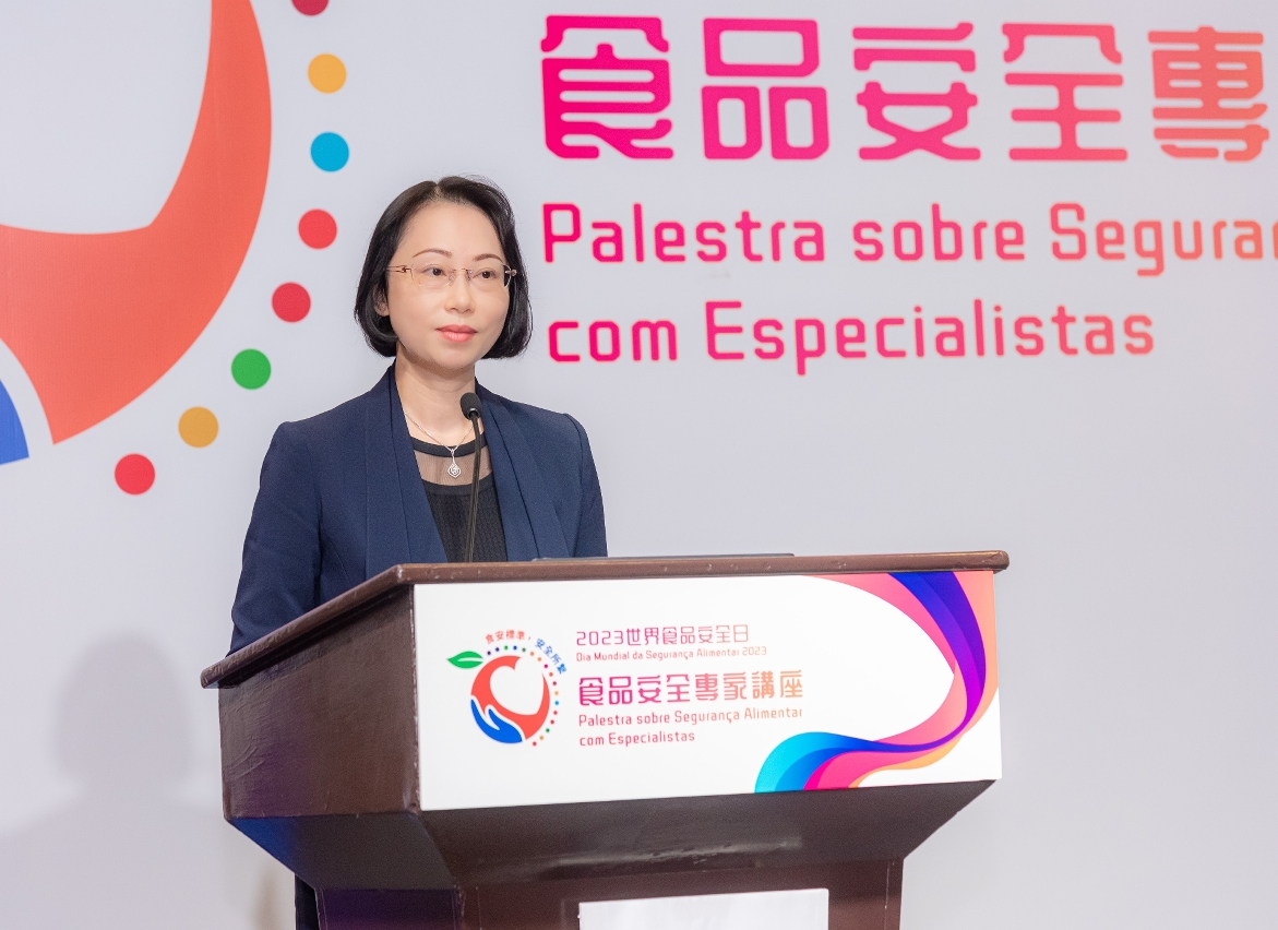 In order to promote technical exchanges and cooperative development of Macao, the Mainland and Hong Kong in the area of food safety, the Municipal Affairs Bureau (IAM) held the “Experts Talks on 2023 World Food Safety Day and Food Safety” on 13 June, inviting representatives from food safety supervision authorities of the Mainland, Hong Kong and Macao to deliver keynote speeches on topics such as the application of food safety technology, the implementation of food safety standards, and the development of the food markets in the Greater Bay Area, and to have in-depth exchange of views with other attendants. More than 400 representatives from the local food sector, related associations, academic institutions and government departments attended the event.
