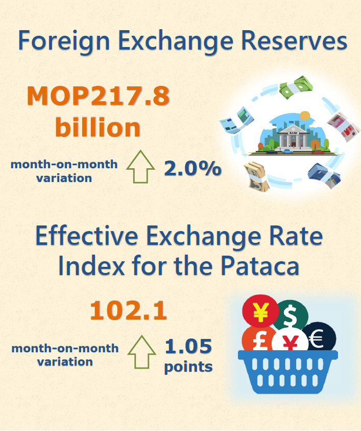 The trade-weighted effective exchange rate index for the pataca rose 1.05 points month-on-month and 0.58 points year-on-year to 102.1 in May 2023, implying that overall speaking, the exchange rate of the pataca grew against the currencies of Macao’s major trading partners.