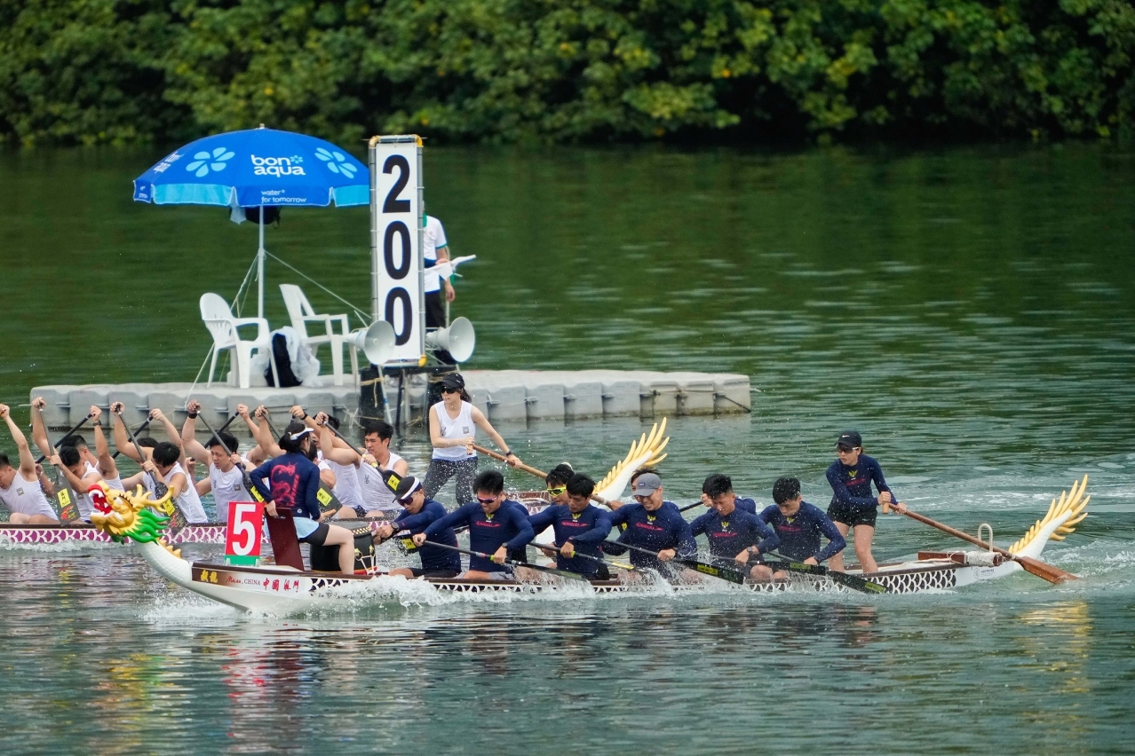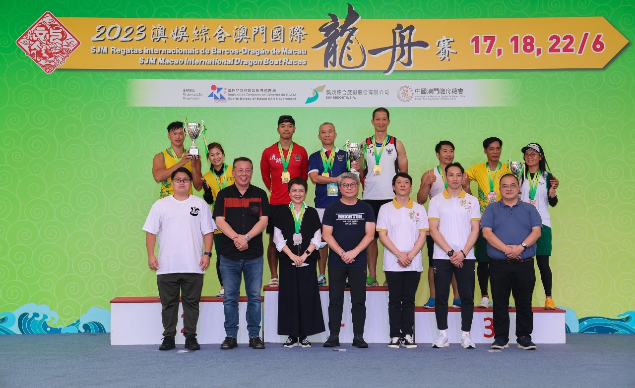 Organised by the Sports Bureau, SJM Resorts, S.A. and the Dragon Boat Association of Macao, China, and co-organised by the Municipal Affairs Bureau and the Public Administration and Civil Service Bureau, the 2023 SJM Macao International Dragon Boat Races kicked off with small dragon boat races at Nam Van Lake Nautical Centre (17 June). After fierce competition among the teams, the Fire Services Bureau won in the Open Category of the Macao Small Dragon Boat Race (200m).
