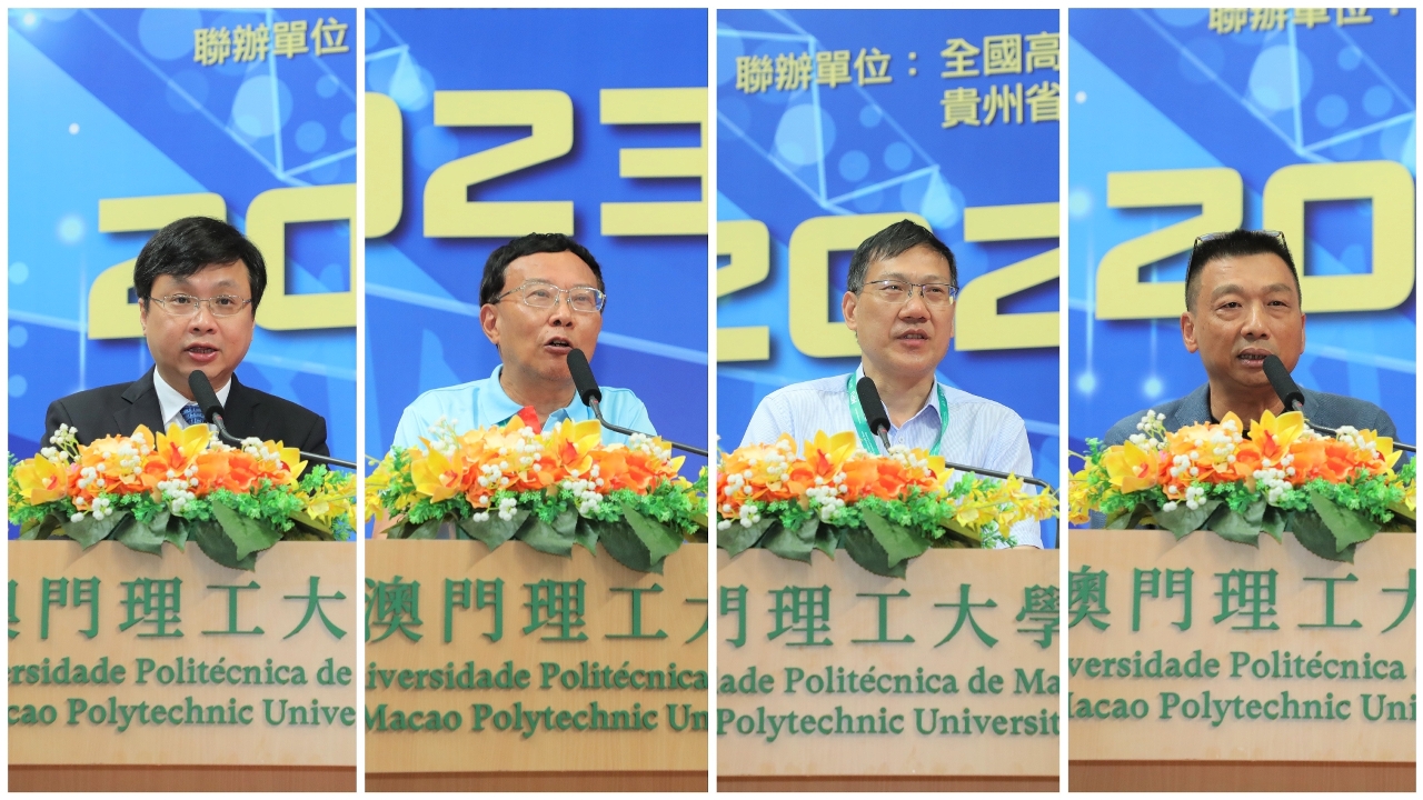 Zhu Qingsheng, Vice President of the National Association for Research on Computer Education in Higher Education and Vice Chairman of the Competition Organising Committee; Huang Xuan, Secretary General of the Computer Academy of Guangdong; Lu Guodong, Vice Chairman of the Research expert group for the Competition Evaluation and Management System in Tertiary schools of the Chinese Higher Education Association; Im Sio Kei, Rector of the Macao Polytechnic University; Wan Kam Meng, President of the Macao Computer Society, and Cheong Chi Seng, Chairman of the Macao Computer Society, officiated the opening ceremony and delivered speeches to encourage the participants in the competition final 2023.
