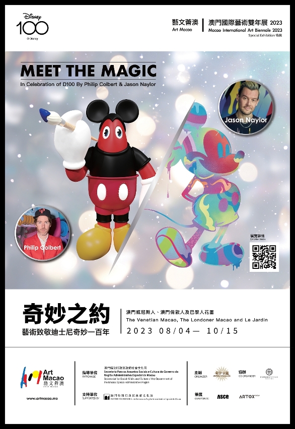 Organized by Sands China Limited, the special exhibition “Meet the Magic - In Celebration of D100 by Jason Naylor & Philip Colbert” will present large-scale artworks for the first time created by Jason Naylor and Philip Colbert, two international artists highly sought after in the fashion industry, with inspiration from Mickey Mouse under the theme of Disney’s 100th Anniversary Celebration, as well as a number of their iconic works, indulging the public in a colourful wonderland of art.