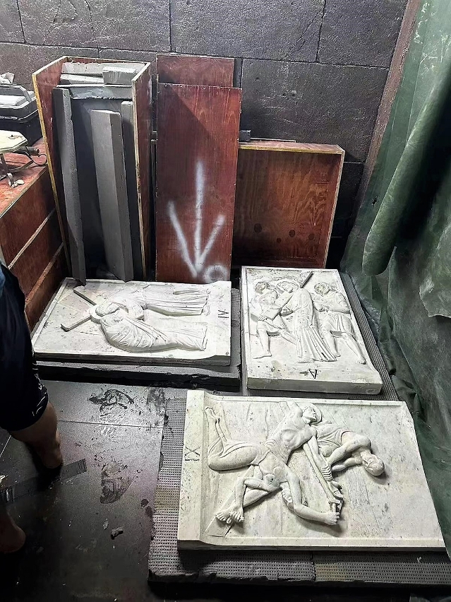 To facilitate the construction works of the Light Rapid Transit currently carried out by the Public Works Bureau in Rotunda de Seac Pai Van, IAM recently moved the Plaques of Stations of the Cross and the Statue of Our Lady at the mentioned location to the workshop for restoration under the guidance of the church. IAM will carry out repairs and beautification of the original site subsequently. After restoration, the Statue of Our Lady and the Plaques of Stations of the Cross will be placed at the original site according to the original layout as per the comments from the Catholic Diocese of Macau.