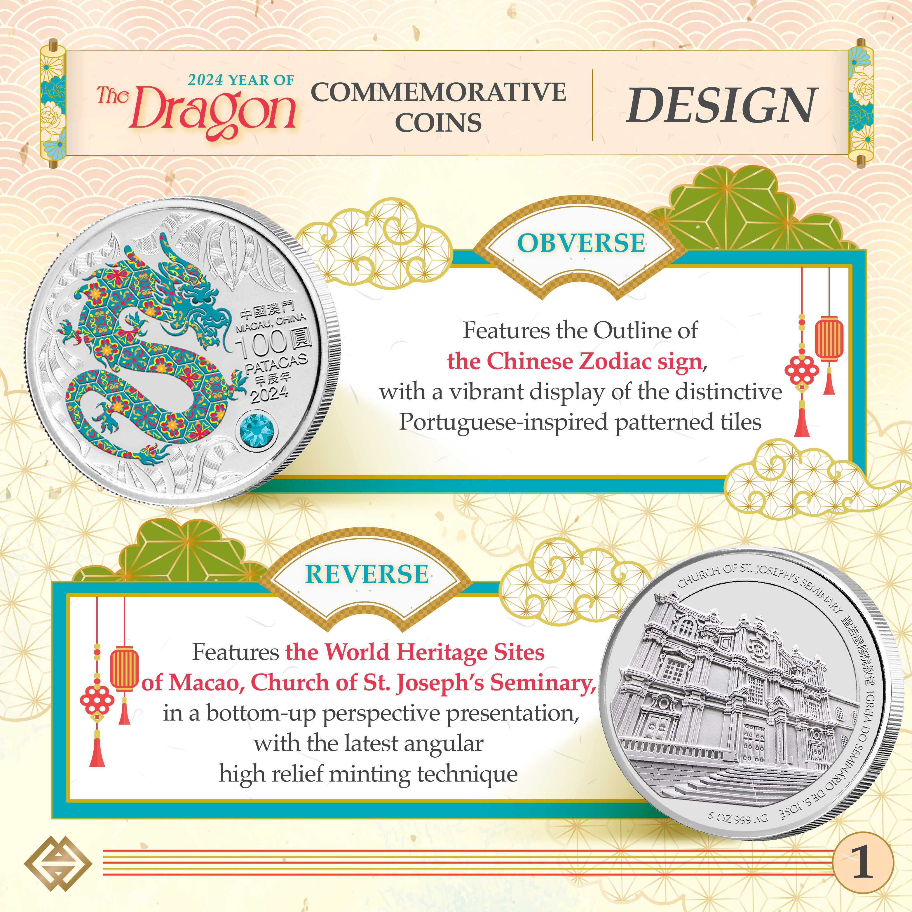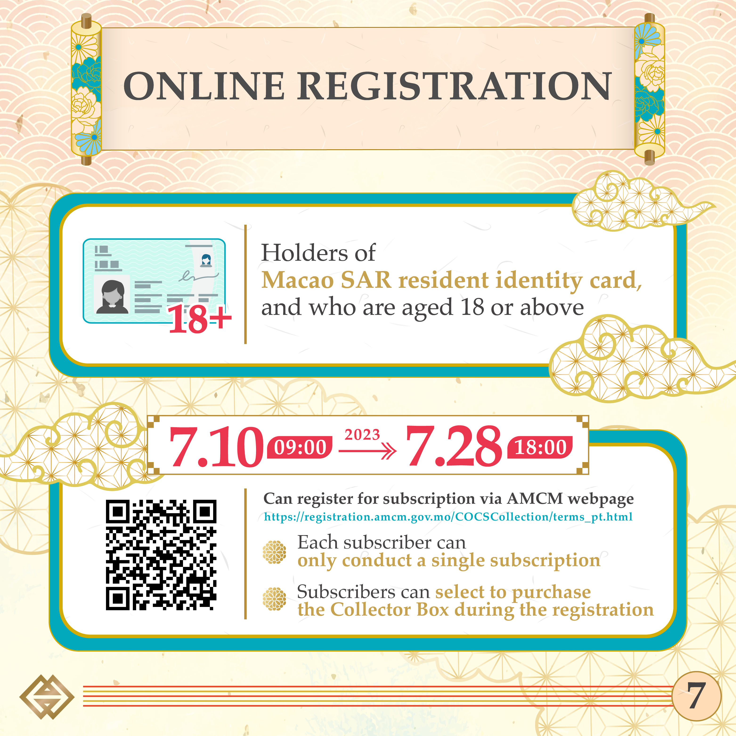 The online subscription period for the 2024 Year of the Dragon commemorative coins and Lunar Year Commemorative Coin Collector Box (2020-2031) will end at 6:00pm on 28 July 2023 (next Friday). Hence, AMCM would like to remind Macao residents who are interested in subscribing for the said coins and collector box to complete the online subscription process (https://registration.amcm.gov.mo/COCSCollection/terms_pt.html) before the mentioned deadline. A service counter has also been set up at the lobby of AMCM during the mentioned period to provide registration service for those who require assistance. For enquiries, please visit our webpage or call our hotline at 28565071 or 28565072.