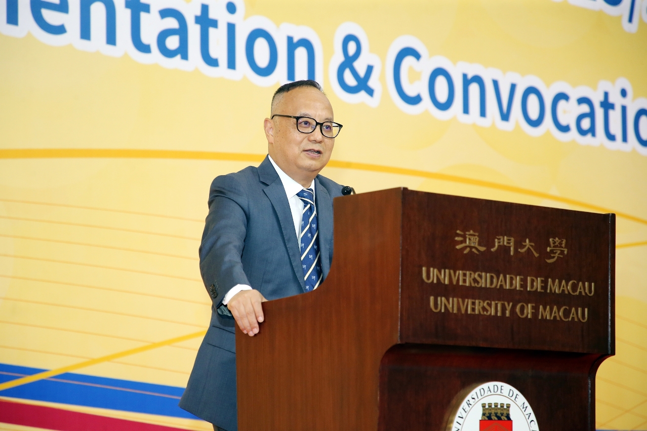 The University of Macau (UM) today (15 August) held the Convocation and First Lecture of University of the 2023/2024 academic year, welcoming 4,400 new students. UM Rector Yonghua Song expressed hope that the new students will embark on their new journey with optimism and confidence, be diligent in their thoughts, be courageous and innovative, and become globally competitive talent who make contributions to the country and Macao.