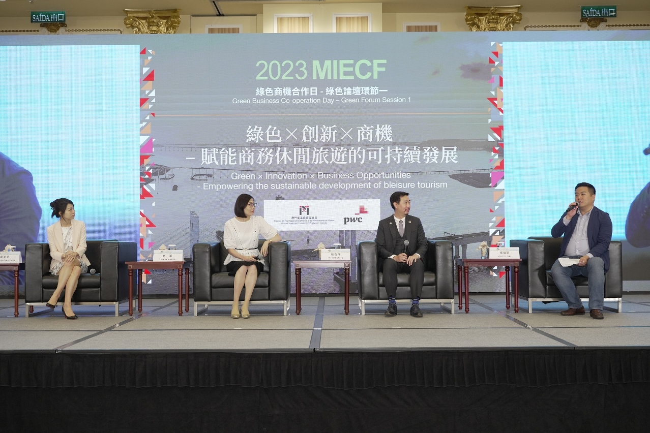 President of the Macao Trade and Investment Promotion Institute (IPIM) Vincent U expressed in his speech that partnering with PwC, a professional organisation, on the session again has further enhanced the professionalism of MIECF. Focusing on business and leisure tourism (bleisure tourism), a part of the “1+4” industries, the Forum has brought together a number of leading figures and experts in related fields to conduct in-depth exchanges and discussions on the greenovation empowerment of the development of bleisure tourism, in a bid to realise the cross-sectoral synergy in green development and foster mutual empowerment.