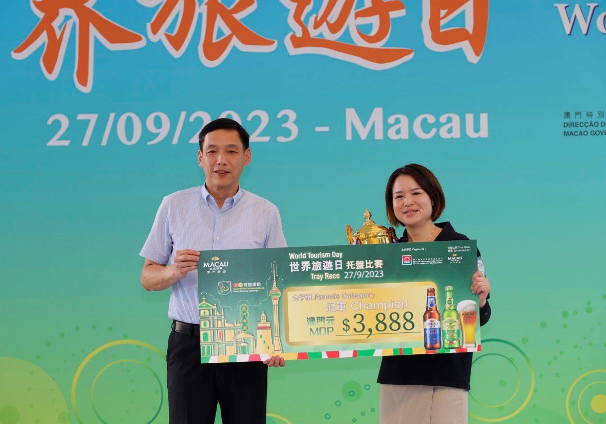The World Tourism Day is designated on 27 September annually. Carrying on this long-held tradition, Macao Government Tourism Office (MGTO) welcomed the Lucky Tourist this morning and organized the “Macao Courtesy Campaign ‧ Tray Race” in the afternoon to celebrate this annual global tourism occasion together in a lively atmosphere.