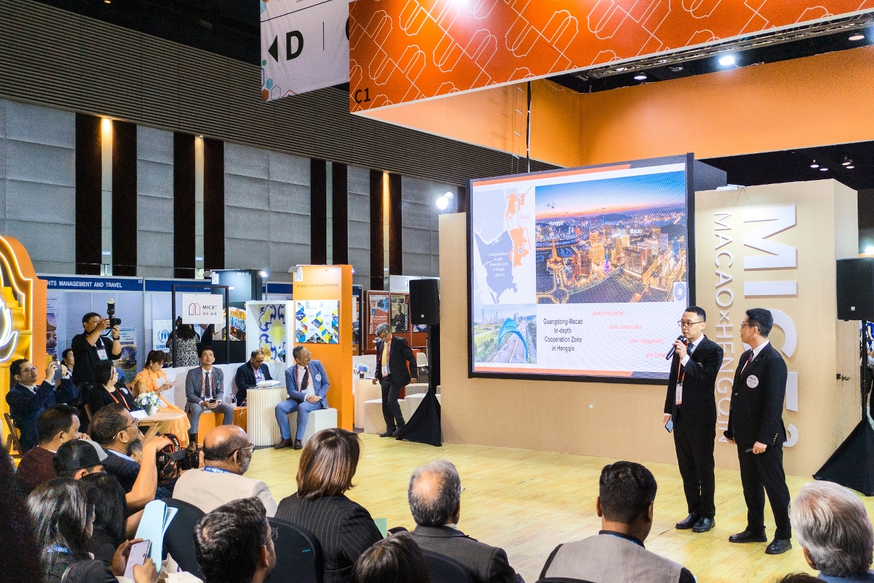 The “Macao-Hengqin Pavilion” was jointly set up by Macao and Hengqin at the Incentive Travel & Conventions, Meetings Asia 2023 (IT&CMA 2023) held in Bangkok, Thailand on 26-28 September, marking its debut with a unified image of “MICE² Macao x Hengqin” to publicise the “multi-venue events” overseas. This promotion campaign aims to introduce potential customers to the MICE environment, policy opportunities, preferential measures, and support services of Macao and Hengqin, thus attracting event organisers to hold MICE events in Macao and Hengqin.