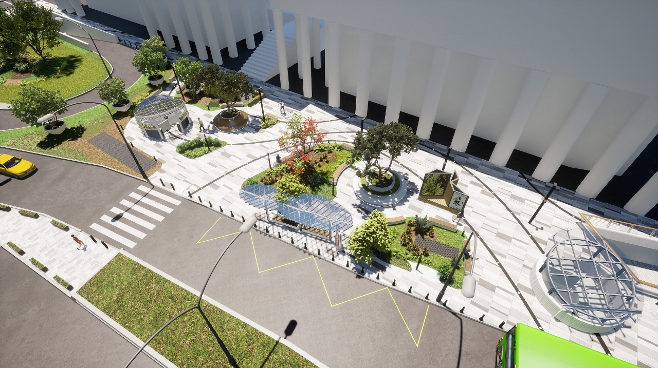 The project will be carried out in two phases. The first phase involves an area of about 3,300 square metres and includes the road section from the bus stop in Praça de Jorge Álvares to the square in front of Lake View Mansion. The finishes of the square will be replaced, green and leisure facilities will be added and more lights will be installed to improve the lighting at night and enhance the overall atmosphere of the square. A glass rain canopy will be added to the round staircase leading to the lower level. In addition, green belts will be used to separate the basement ventilation shaft to reduce the effect of the ventilation shaft on pedestrians. The locations of zebra crossings will also be adjusted to expand the waiting area of traffic islands and change the traffic flow of pedestrians crossing the roads to prevent pedestrians from passing by the ventilation shaft when they cross the street.