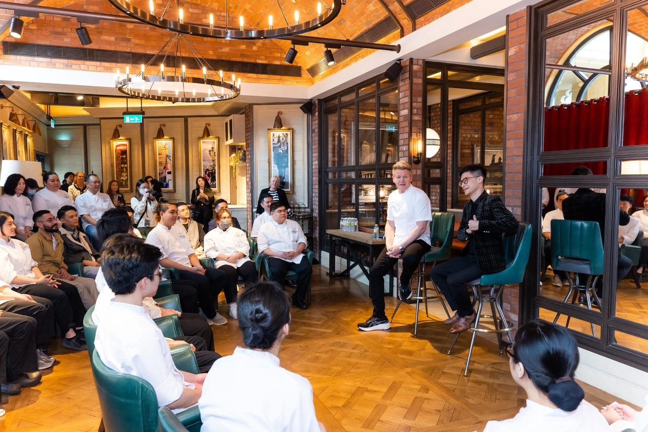 Gordon Ramsay, the globally acclaimed chef and restaurateur visited Macao. During his visit, students from the Macao Institute for Tourism Studies (IFTM), enrolled in the Culinary Arts Management bachelor degree programme and accompanied by alumni, had the exceptional opportunity to partake in a thought-provoking Question and Answer session with Chef Ramsay. The session took place at the newly established Gordon Ramsay Pub & Grill at The Londoner Macao.