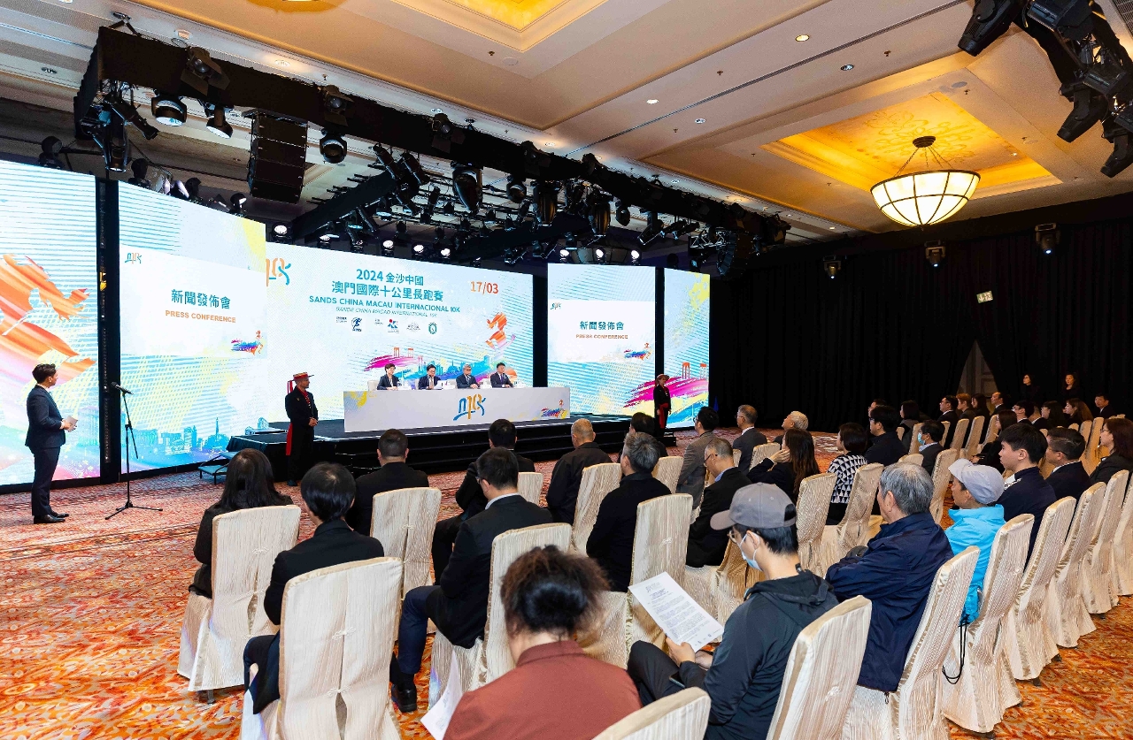 Organized by the Sports Bureau, Sands China Ltd. and the General Association of Athletics of Macau (AGAM), the 2024 Sands China Macao International 10K will take place on 17 March (Sunday). The Organizing Committee held a press conference today (18 January) to announce the details and registration arrangements for the event. The press conference was attended by Mr. Pun Weng Kun, President of the Sports Bureau; Dr. Wilfred Wong, President and Executive Director of Sands China Ltd.; Mr. Chan Pou Sin, Vice President of AGAM; Ms. Christine Lam, Vice President of the Sports Bureau; and members of the Sports Committee along with other guests.