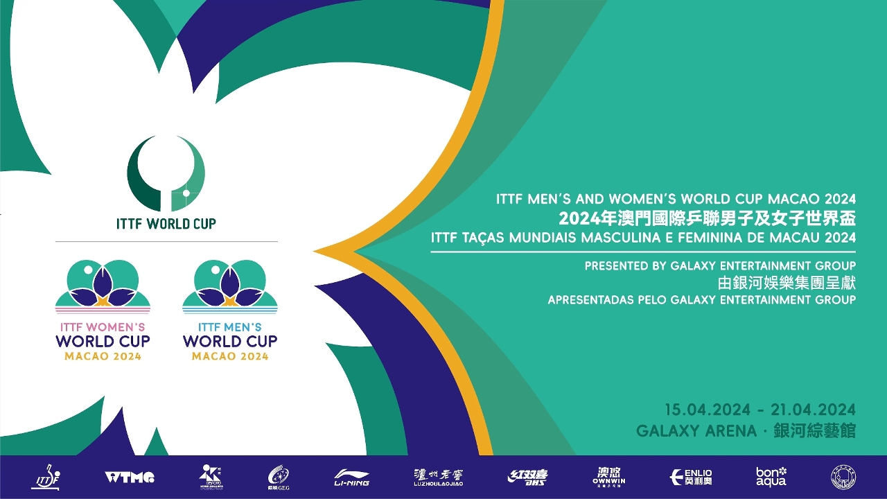 The ITTF Men's and Women's World Cup Macao 2024 presented by Galaxy Entertainment Group, sanctioned by the International Table Tennis Federation (ITTF), organized by the Sports Bureau, Galaxy Entertainment Group and World Table Tennis Management Group Limited (WTMG), and co-organized by the Macau Table Tennis General Association, will be held at the Galaxy Arena from 15 to 21 April. The organizers today (25 March) unveiled the official event logo, mascot and slogan.