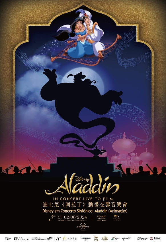 The Macao Orchestra 2023-24 Concert Season is co-organised by Cultural Affairs Bureau, Macao Orchestra Company, Limited, Galaxy Entertainment Group, Melco Resorts & Entertainment Limited, MGM, Sands China Ltd., SJM Resorts, S.A., and Wynn Macau Ltd, and supported by the Bank of China Macau Branch. Disney’s Aladdin in Concert Live to Film is presented by MGM, and the performance will last approximately 2 hours with an interval. Tickets will be available from 17 April at the Macau Ticketing Network at MOP600, MOP500, MOP400 and MOP300. The public can purchase tickets through the Macau Ticketing Network. 24-hour ticketing hotline: 2855 5555; online ticketing: www.macauticket.com.
