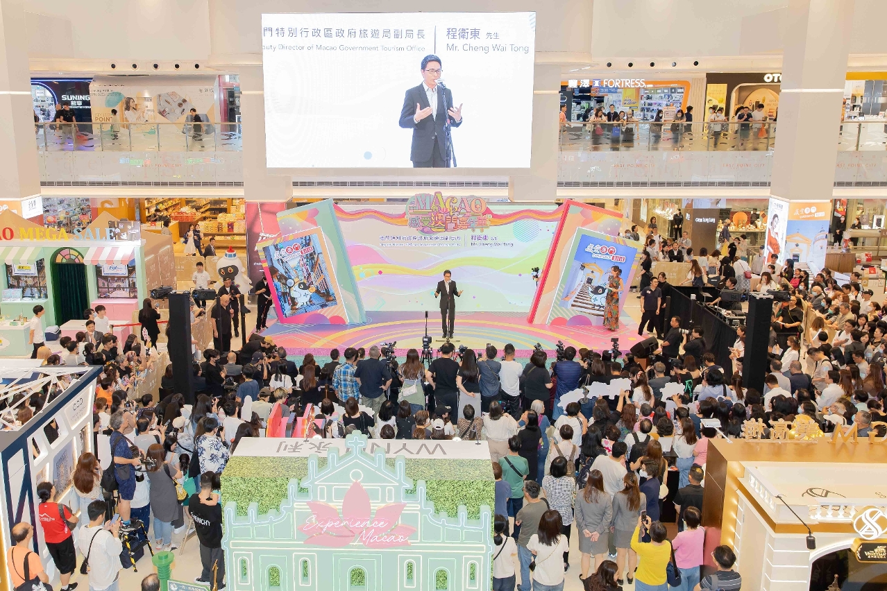 The three-day Experience Macao Carnival was unveiled at the atrium on the first floor of East Point City today (17 May). The opening ceremony was officiated by Deputy Director of MGTO, Cheng Wai Tong. The guests included Head of Division of Culture, Tourism, MICE, Trade and Commerce of the Economic Development Bureau of the Guangdong-Macao In-Depth Cooperation Zone in Hengqin, Vic Lam, and the representatives of the six integrated resort enterprises from Macao, together with others.