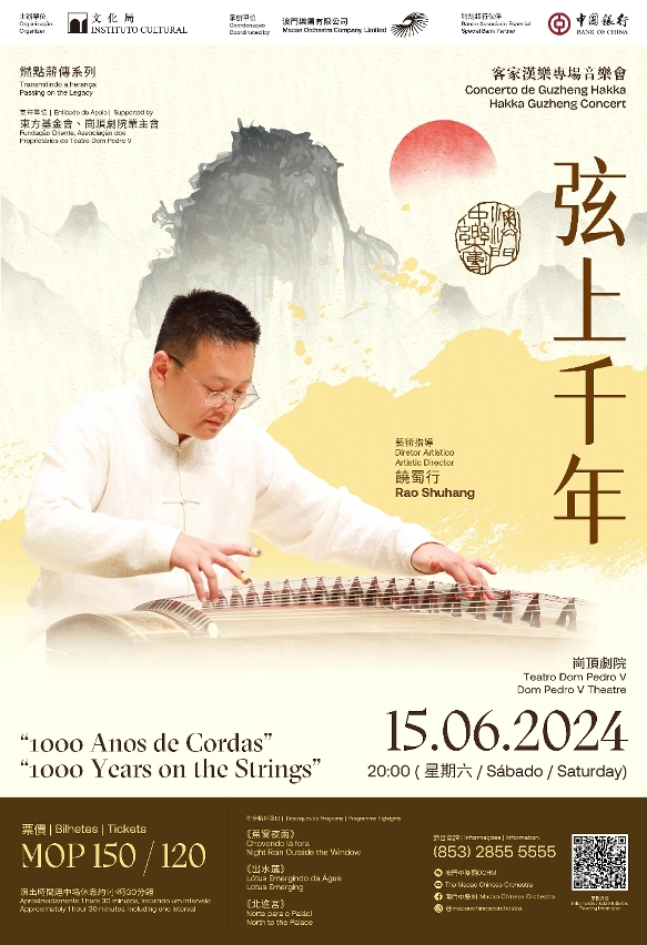 Moreover, the Macao Chinese Orchestra will hold the Lecture “Ethereal Timbre - Guzheng Playing Techniques and Appreciation of Guangdong Hakka and Cantonese Guzheng Music” at the Macao Conservatory Auditorium on 12 June at 7pm. In this occasion, Rao Shuhang will introduce guzheng appreciation methods to music enthusiasts. The lecture will last approximately one hour and is free of charge. For registration details, please visit the Macao Chinese Orchestra’s official WeChat account “Macao Chinese Orchestra OCHM” and Facebook page “Macao Chinese Orchestra”.