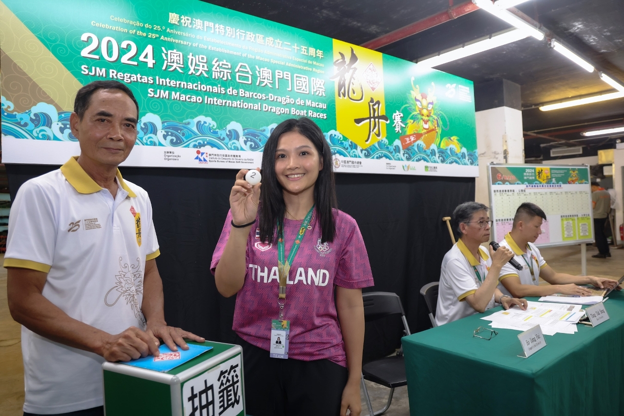 Officiating guests at the prize ceremony included: Pun Weng Kun, President of the Sports Bureau; Angela Leong, Director of SJM Resorts, S.A.; Lai Pak Leng, Chairman of the Dragon Boat Association of Macao, China; Claudio Schermi, President of the International Dragon Boat Federation; Isabel Celeste Jorge, Member of the Administration Committee on Municipal Affairs of the Municipal Affairs Bureau; Vong Ka Hou, President of the Dragon Boat Association of Macao, China; Cheong Kuai Hong, Chio Man Tou, Au Ieong Sin Ieng, Pun Keng Man and Lei Ka In, members of the Sports Committee.