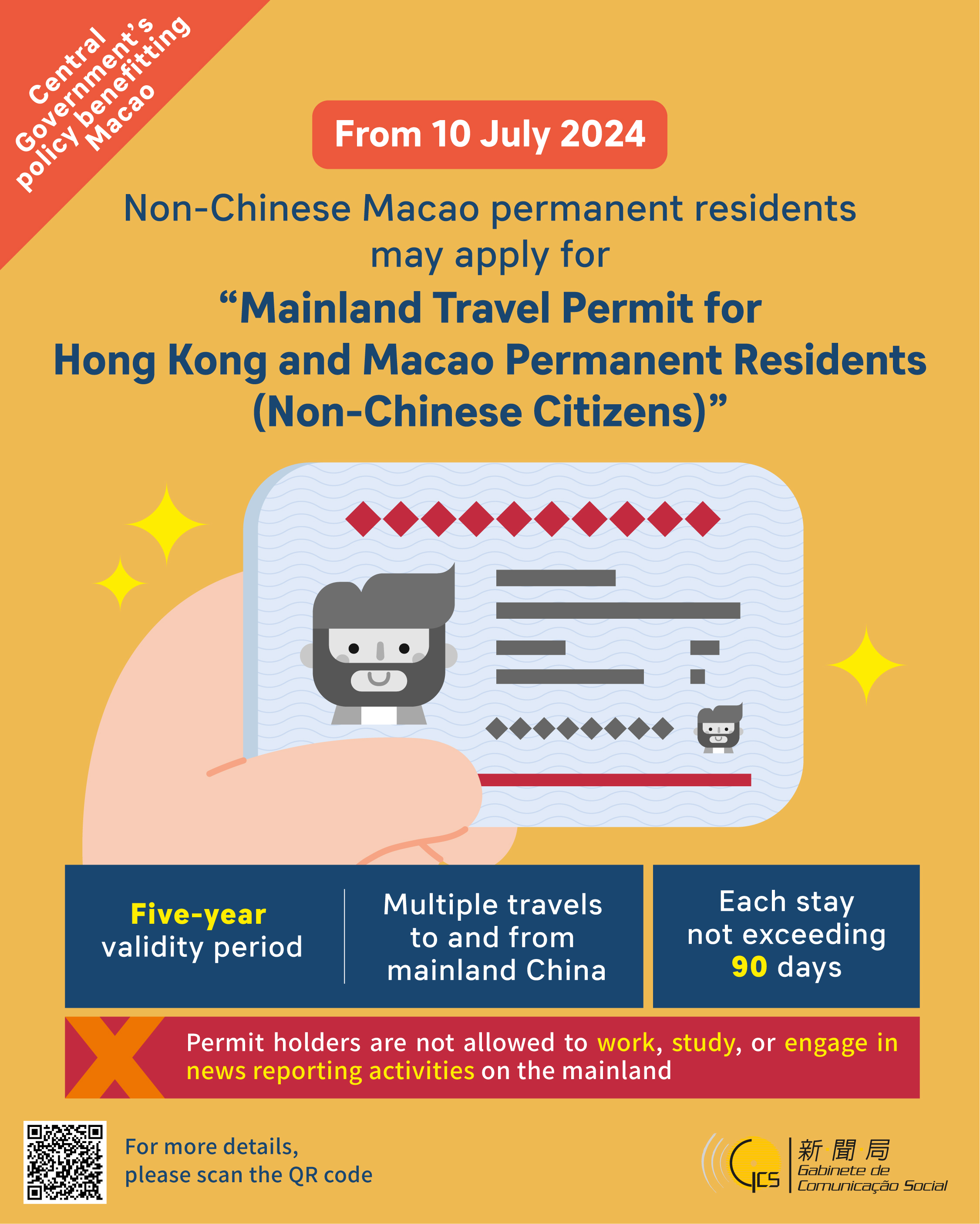 【Infographic】Central Government’s policy benefitting Macao - Facilitate travel of non-Chinese Macao permanent residents to and from the mainland China