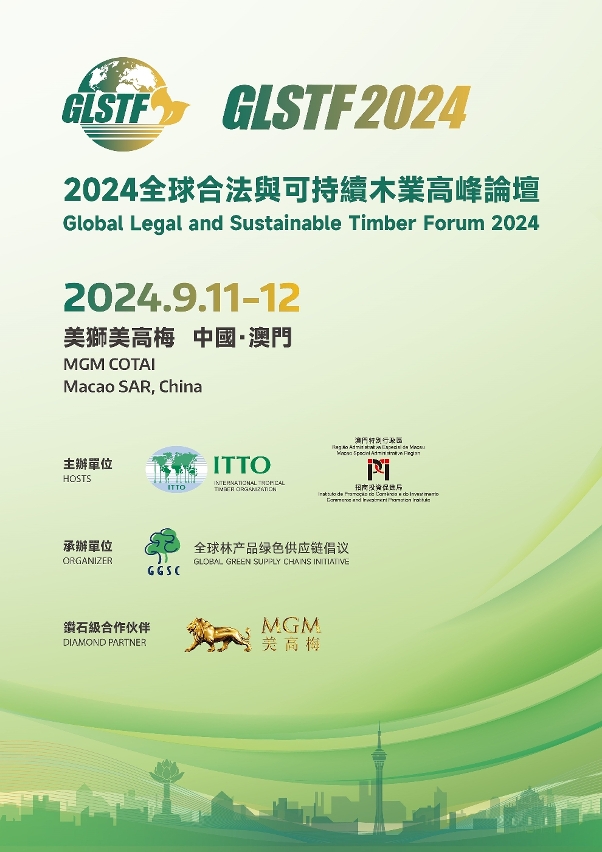 The GLSTF 2024 is jointly hosted by the International Tropical Timber Organisation (ITTO) and the Commerce and Investment Promotion Institute (IPIM) of the Macao Special Administrative Region, organised by the Secretariat of the Global Green Supply Chains Initiative (GGSC) and supported by MGM as the “diamond partner”. It will be held on 11 and 12 September at MGM COTAI.
