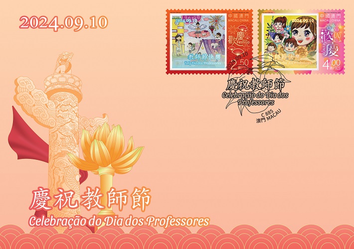 To celebrate the Teachers’ Day, Macao Post and Telecommunications Bureau announces that a Temporary Post Counter will be set up at the Philatelic Shop of the General Post Office from 10:30 to 17:30 on 10th September 2024, to provide the commemorative postmark cancellation service for the “Celebration of Teachers’ Day”.