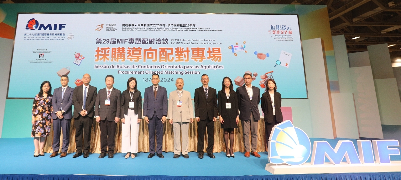 To achieve more effective discussions between small and medium-sized enterprises (SMEs) and large corporations, the “Procurement Orientated Matching Session” of the 29th Macao International Trade & Investment Fair (29th MIF) was held on 18 October. More than 150 purchasers, exhibitors, and suppliers of large enterprises from a number of integrated tourism and leisure enterprises, supermarkets, and catering companies participated in the activity, where 140 business matches were made and 9 procurement projects were signed, covering sky dining, food and beverage ingredients, clothing design and manufacturing, fragrance system, electric system and product retail.