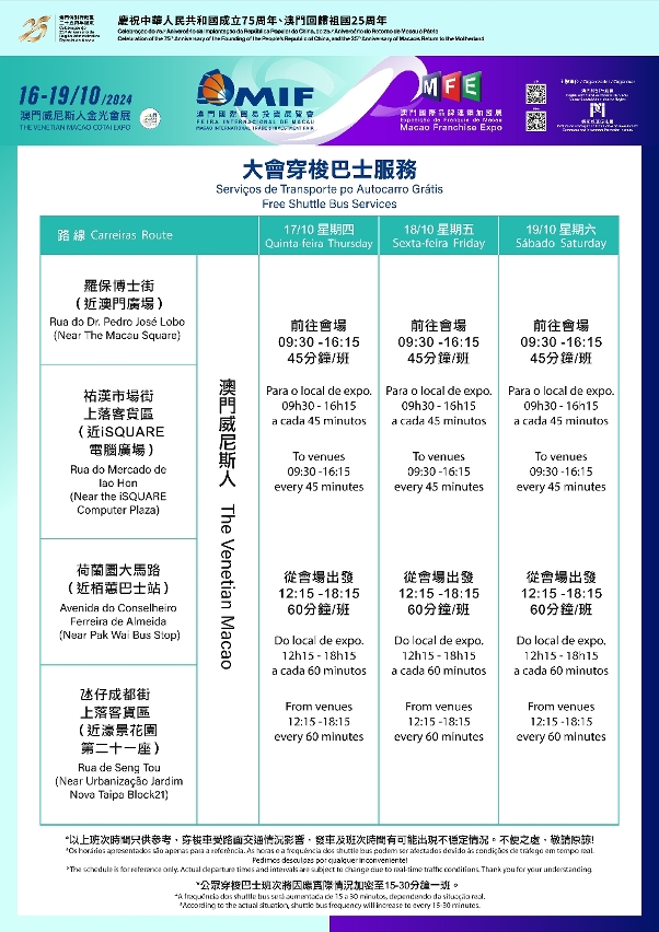 For the latest information, please visit the official website at www.mif.com.mo or www.mfe.mo; call (853) 2882 8711 for the 29th MIF or (853) 8798 9654 for the 2024MFE; and follow “MICE_IPIM” on WeChat.