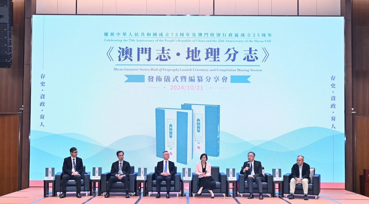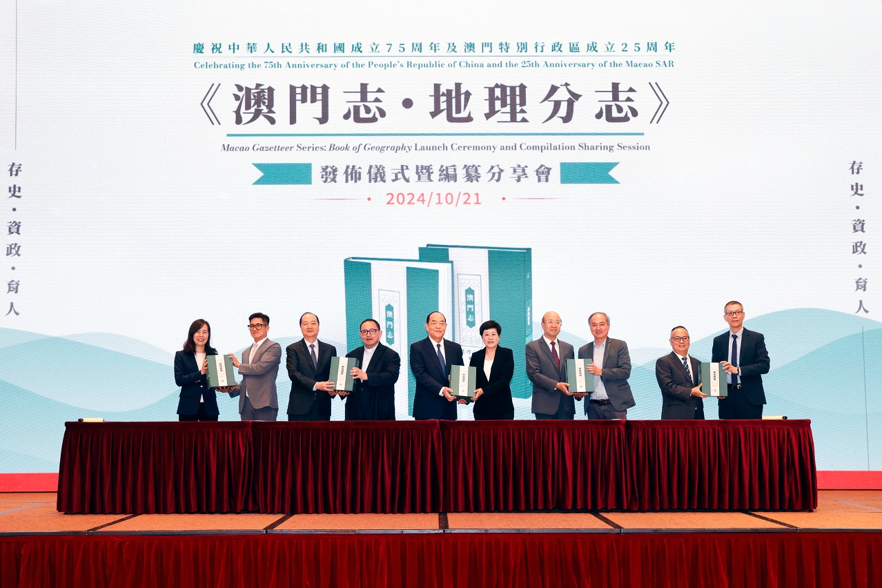 The launch ceremony and compilation sharing session for Macao Gazetteer Series: Book of Geography was held today (21 October) at the University of Macau (UM). Speaking at the event, Ho Iat Seng, chief executive of the Macao SAR, said that the compilation of Macao Gazetteer is one of the most important cultural projects since the establishment of the Macao SAR. The publication of Macao Gazetteer Series: Book of Geography underscores the Macao SAR’s respect for national tradition and provides support for developing Macao into a base for exchange and cooperation where Chinese culture is the mainstream and diverse cultures coexist.