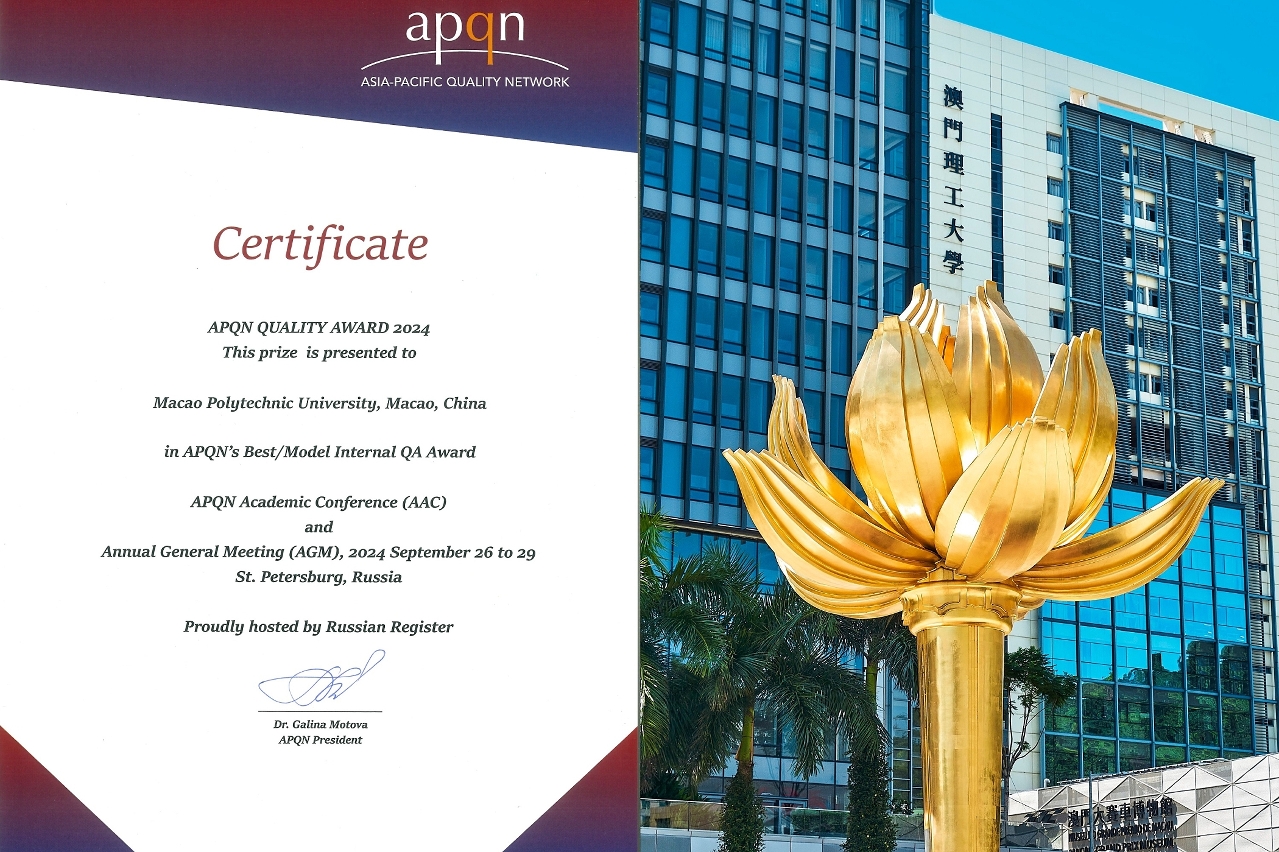 Macao Polytechnic University (MPU) has been conferred the “APQN Quality Awards” at the Asia-Pacific Quality Network (APQN) Academic Conference and Annual General Meeting 2024. It is the only higher education institution in Macao to have secured the “APQN Quality Awards” four times. The educational quality of Macao’s higher education has been internationally recognised, demonstrating MPU’s commitment to pursuing excellence and quality development in teaching and research.