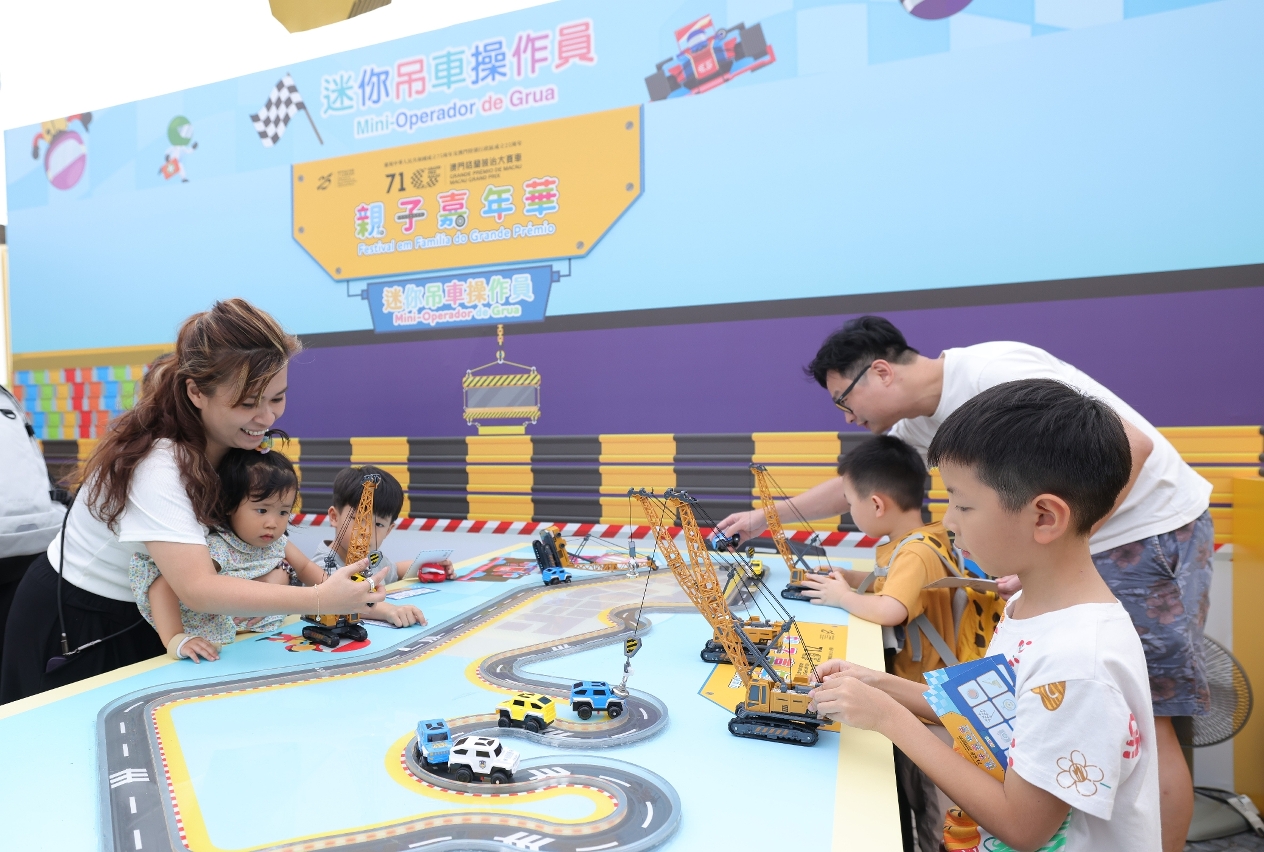 The 71st Macau Grand Prix-themed carnival at Tap Seac Square features a recreated Guia Circuit and a mini race track, with interactive games catering to the whole family. Children participating in the event can become mini racing drivers and race track workers. Visitors can gain a first-hand understanding of the various tasks performed during the Grand Prix, and learn more about racing activities as well as have the opportunity to obtain 71st Grand Prix-themed souvenirs. Additional elements at the carnival convey the message of enhanced family life.