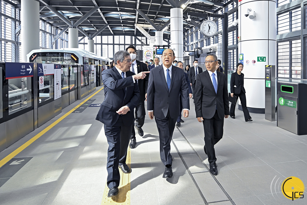 The opening ceremony was held at 11 AM at the LRT Hengqin Line Lotus Station, jointly officiated by Chief Executive, Mr. Ho Iat Seng and Secretary for Transport and Public Works, Mr. Raimundo Arrais do Rosário. The President of the Board of the Administration of Macao Light Rapid Transit Corporation, Limited., Mr. Ho Cheong Kei, stated his speech that the opening of the Hengqin Line, expressed heartfelt gratitude to the planning and construction entities from both regions for overcoming numerous challenges to build this "Connecting Line" that tightly links Macao and Hengqin. The opening of the Hengqin Line is of great significance, facilitating the connection of rail transit between Macao and the mainland China, and aiding Macao to more actively integration into the one-hour living circle of the Guangdong-Hong Kong-Macao Greater Bay Area.