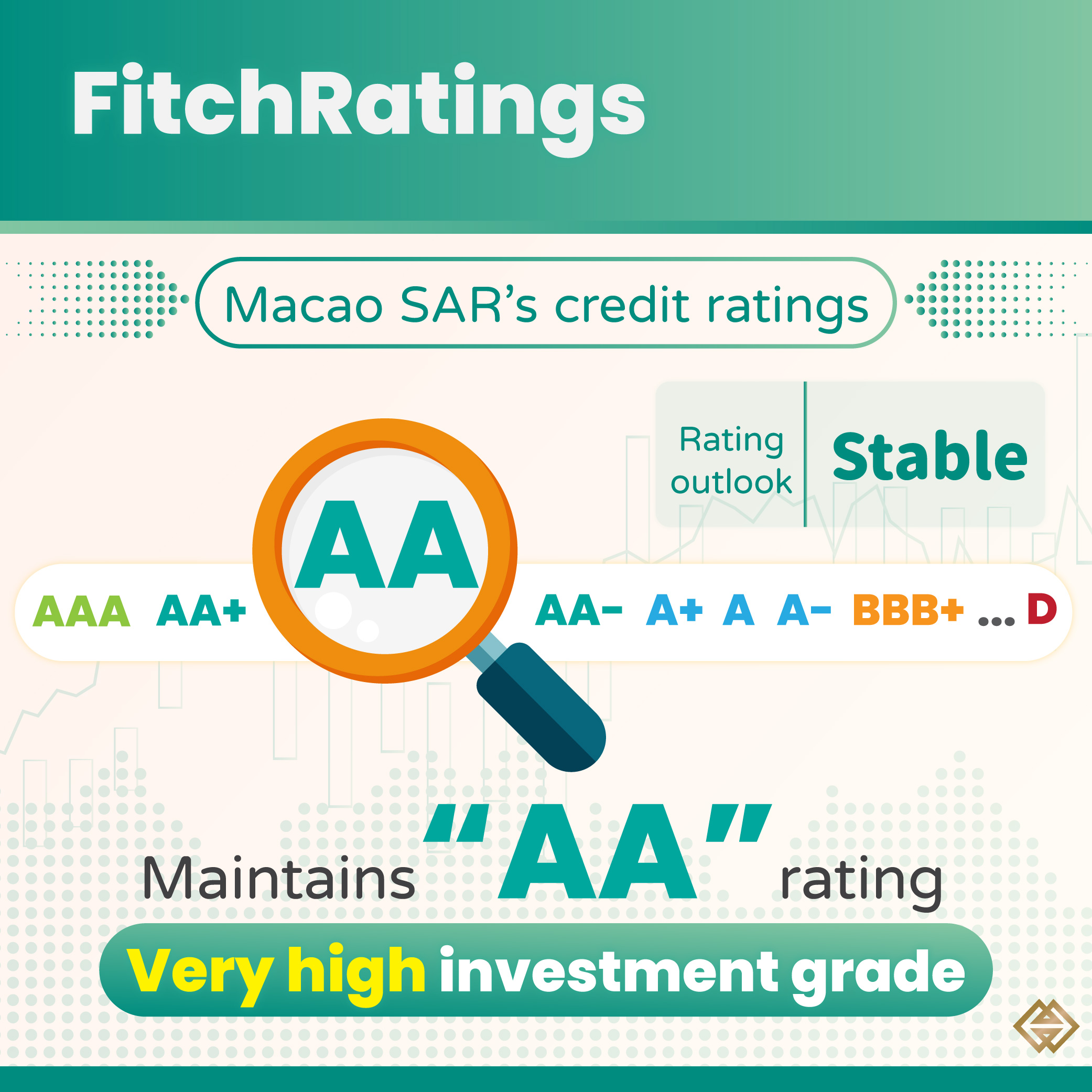 The international rating agency reaffirms Macao SAR’s “AA” rating (the third highest), which is mainly based on its exceptionally strong fiscal and external positions, as well as the SAR Government’s adherence to prudent fiscal management even during periods of economic adjustment. Meanwhile, Fitch expects Macao’s economic prospects to be bolstered by the continued expansion of the tourism sector with increased non-gaming investment, alongside the favourable relaxation of travel policies for Mainland visitors and the enhancement of tourism infrastructure.